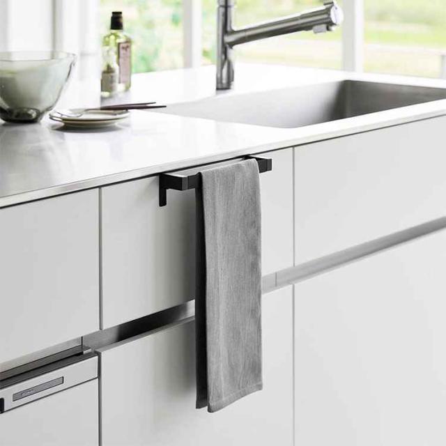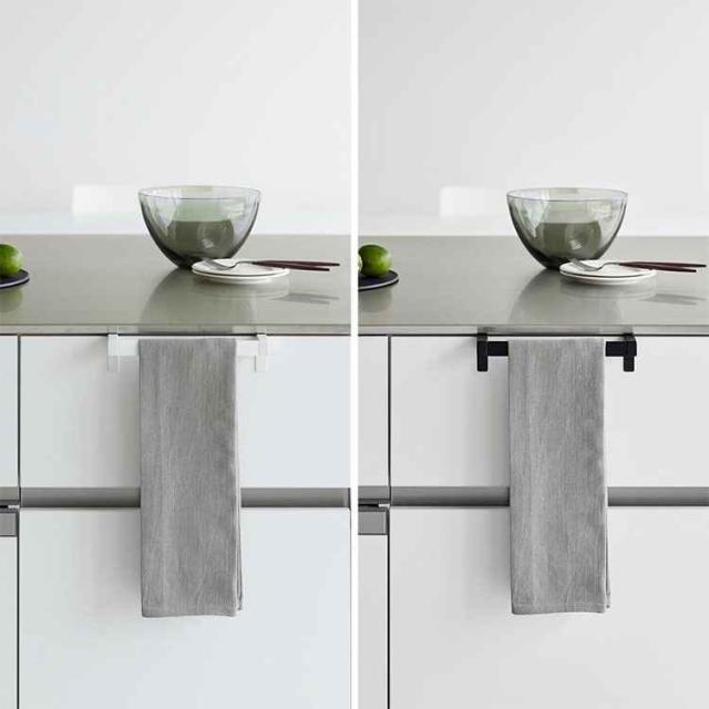 シリコーンでタオルの滑り落ちを防止するキッチンタオルハンガーバー。手を拭いたとき柔らかい素材のタオルもズレにくい。シリコーン上部は角ばった形状なのでタオルがしっかり引っ掛かります。
