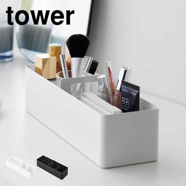 山崎実業 ハンドル付きスリム収納ボックス タワー 1854 1855 tower 収納ケース 小物入れ 救急箱 薬箱 メイクボックス 持ち手付き おしゃれ 洗面所 コスメ収納 デスク テーブル 卓上収納 リビング 化粧品 衛生用品 小物置き 文房具 整理整頓 シンプル ホワイト ブラック