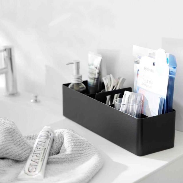 Details ハンドル付きスリム収納ボックス 小物の収納に便利な、ハンドル付きのスリムなボックス。マグネット付きの可動式仕切りは、自由に仕切ることができるので小物やシートマスク、湿布なども収納しやすく便利。薬や衛生用品、メイク用品などの持ち運びしたいアイテム収納に便利です。2個使用して、基礎化粧品とメイクアップ用品を分けて収納するのも便利です。スリムなので戸棚に並べて置いても場所をとりません。 ブランド名 tower / タワー 品番 1854/1855 JAN 4903208018548/4903208018555 サイズ 本体:H9.6×W32×D10cm 可動式仕切り:H6.2×W9.5×D3cm 内寸 H7.9×W15.8×D9.8cm(仕切り1つあたり) 重量 約865g 素材 本体・可動式仕切り:スチール(粉体塗装) マグネット クッション:シリコーン 生産国 中国 ご注意 ※表記サイズより、多少の誤差があることがございます。 ※商品の画像はできる限り実物に近づけるよう配慮しておりますが、お使いのモニターやご覧になる環境によりましてはカラーの見え方に差が出る場合がございます。ご了承くださいませ。 関連キーワード 山崎実業 ハンドル付きスリム収納ボックス タワー 1854 1855 tower 収納ケース 小物入れ 救急箱 薬箱 メイクボックス 持ち手付き おしゃれ 洗面所 コスメ収納 デスク テーブル 卓上収納 リビング 化粧品 衛生用品 小物置き 文房具 整理整頓 シンプル ホワイト ブラック 取手付き 整理ボックス 仕切りラック 仕切り収納 隙間収納 インテリア 北欧 マルチケース くすり箱 新生活 可動式 仕切り スリム 白 黒 マグネット 持ち運び すっきり 入れ物 省スペース 磁石 玄関 スマート 湿布 基礎化粧品 スキンケア用品 絆創膏 ストック サプリ リップ クリーム ブラシ メイク入れ バスケット サニタリー 掃除用品 小物収納 バスケット サニタリー 掃除用品 小物収納 10代 20代 30代 40代 50代 60代 70代 80代 子ども 子供 こども キッズ ジュニア 女性 女子 女の子 ガールズ レディース girl 男性 男子 男の子 ボーイズ メンズ boy 父 母 おかあさん おとうさん パパ ママ シニア おじいちゃん おばあちゃん お爺ちゃん お婆ちゃん 祖父 祖母 じいじ ばあば バースデー 誕生日 プレゼント プチ ミニ ギフト お祝い お返し 粗品 景品 送別会 イベント クリスマス クリスマスプレゼント バレンタイン チョコ以外 ホワイトデー おしゃれ オシャレ お洒落 かわいい 可愛い カワイイ シンプル かっこいい カッコいい カッコイイ | |||||||||||||