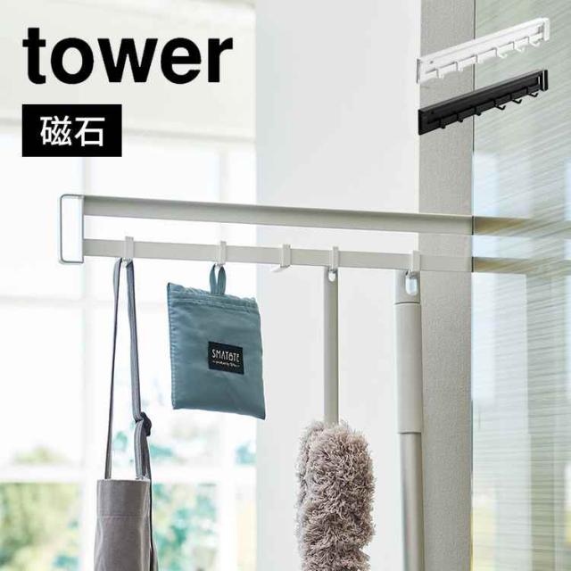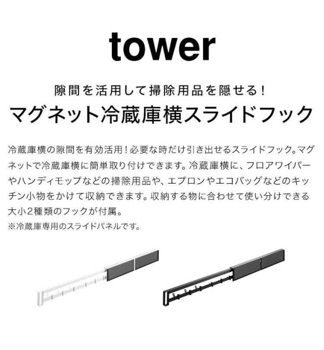 山崎実業 マグネット冷蔵庫横隠せるスライドフック タワー 1861 1862 tower 隙間収納 掃除 収納 フック付き ラック 引っ掛け 壁掛け 磁石 壁面 浮かせる 隠す 収納 掃除用品 キッチン 台所 グッズ フロアワイパー ハンディモップ エプロン エコバッグ 引き出し 簡単設置