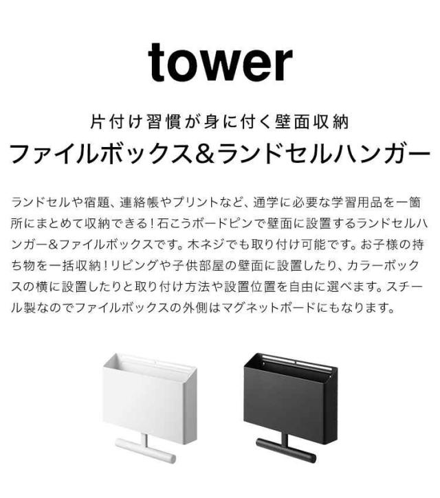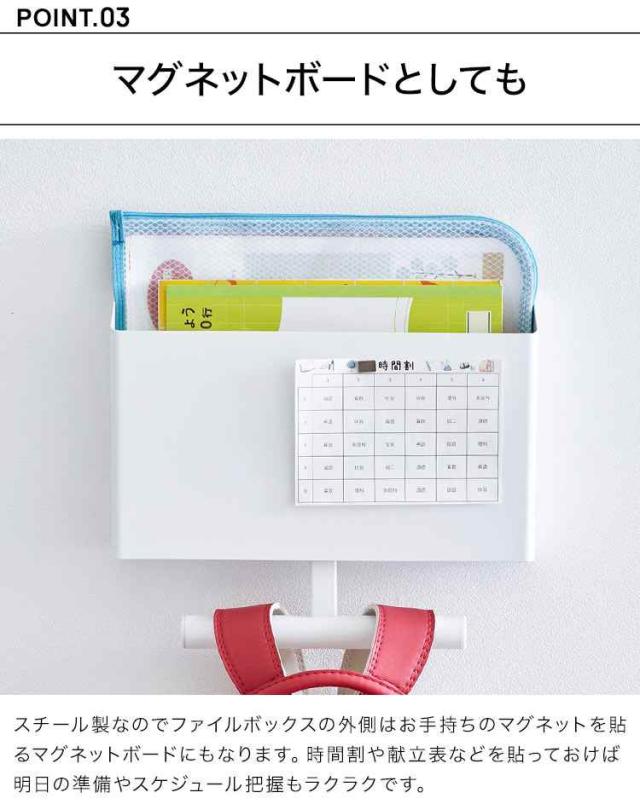 山崎実業 ウォールファイルボックス&ランドセルハンガー 石こうボード壁対応 タワー 1865 1866 tower ランドセルラック ハンガー おしゃれ 収納 壁掛け 壁面収納 省スペース 子ども 教科書 ノート A4 ファイル プリント タブレット リュック カラーボックス 横 入学準備 白