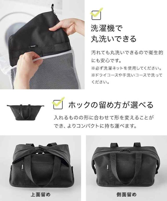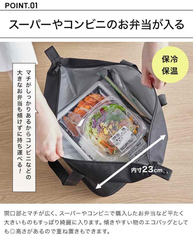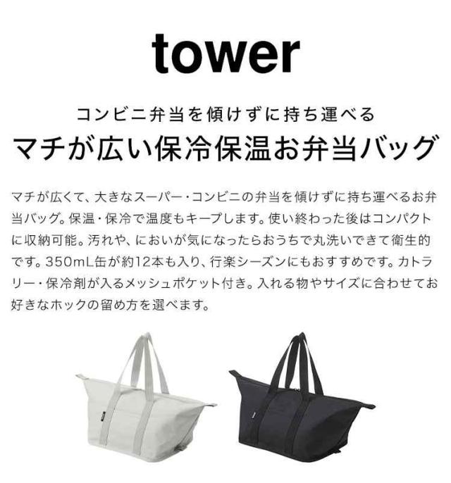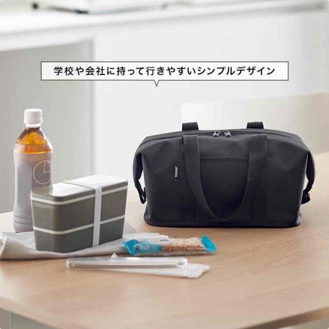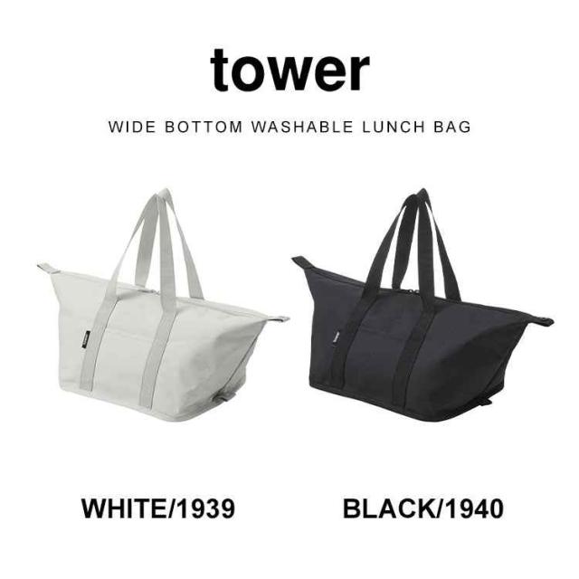 山崎実業 スーパー・コンビニ弁当がそのまま入る洗えるお弁当バッグ タワー tower 1939 1940 ランチバッグ 保冷バッグ 弁当袋 保温 おしゃれ シンプル 大きめ ランチトート ファスナー 大容量 お弁当入れ エコバッグ 洗える ホワイト ブラック マチ付き 傾かない 底 広い