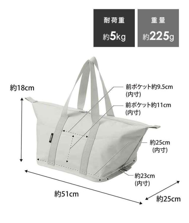 ホックを留めない場合:H18×W51×D25cm(持ち手含まず)