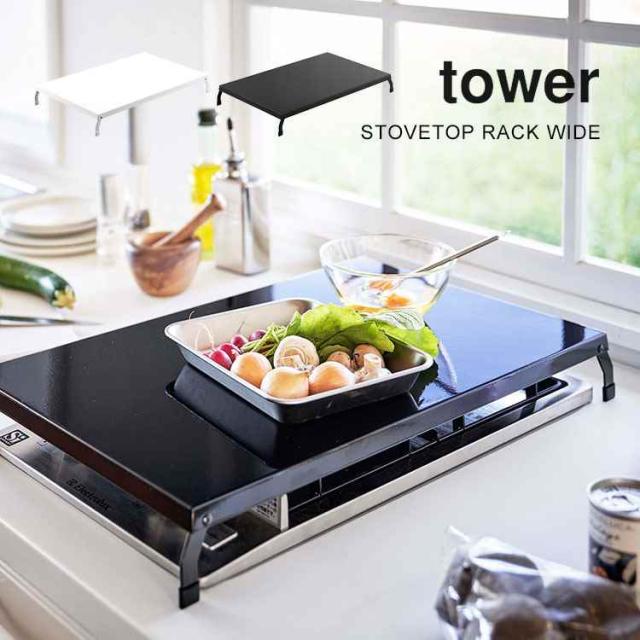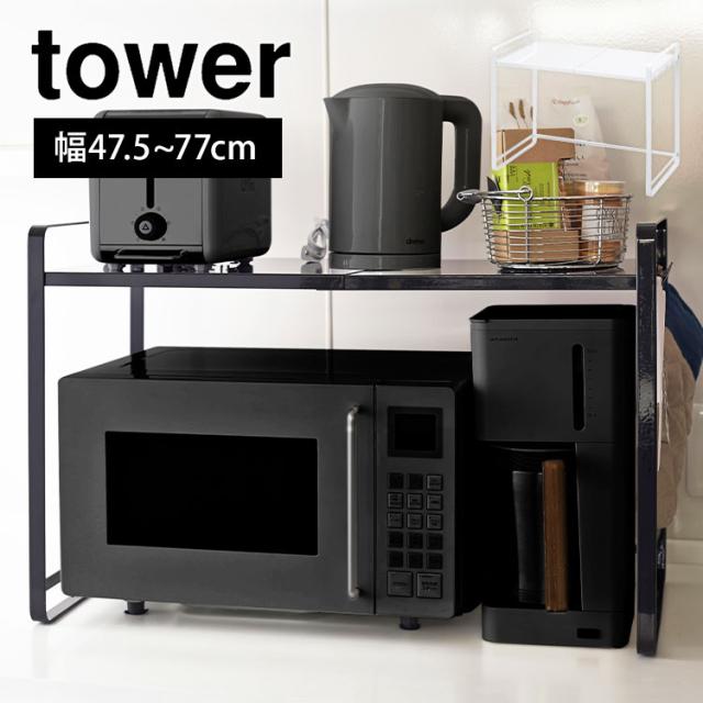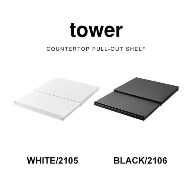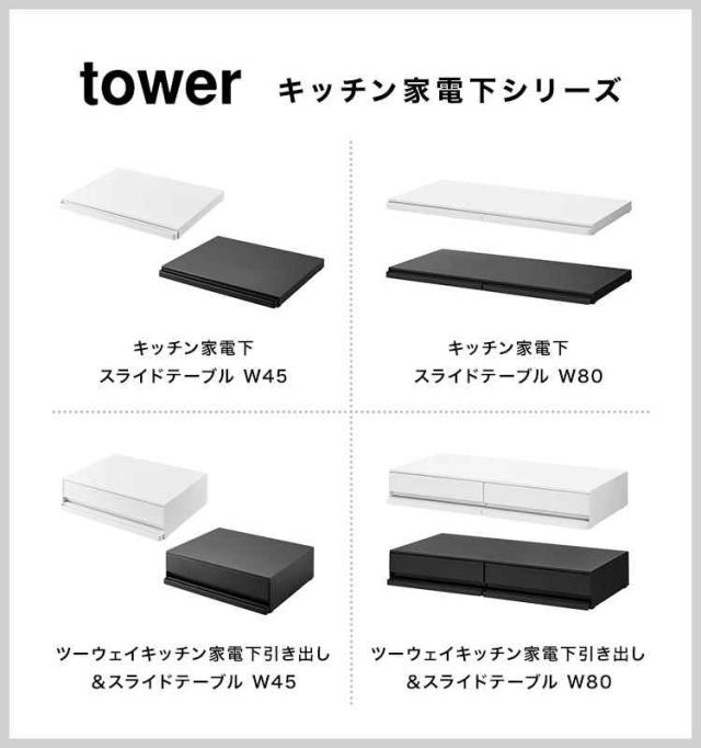山崎実業 キッチン家電下スライドテーブル タワー 2105 2106 tower キッチン 作業台 レンジ下 調理台 台所 オーブン 炊飯器 ケトル 下 省スペース コンパクト シンプル スリム ホワイト ブラック スペース 有効活用 幅 45cm スライドトレー 引き出し 収納 おしゃれ スマート