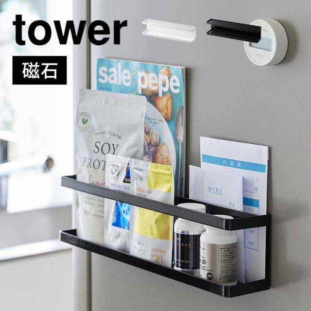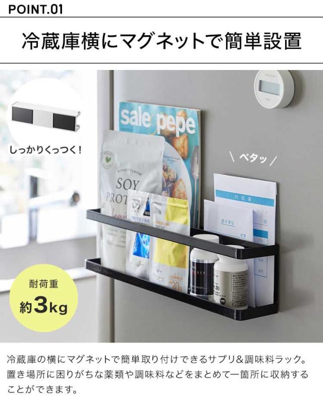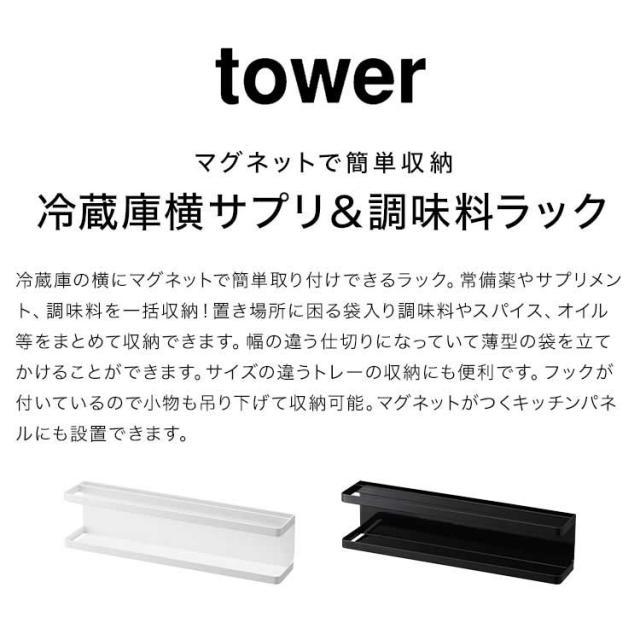 山崎実業 マグネット冷蔵庫横サプリ&調味料ラック タワー tower 2188 2189 磁石 薬入れ サプリメント 調味料入れ スパイスラック オイル ストック キッチン収納 台所 棚 キッチンラック トレー 小物入れ ケース 壁付け スリム コンパクト 浮かせる収納 薬袋 整理整頓 白 黒