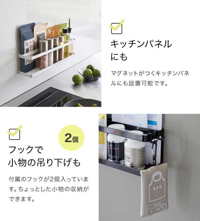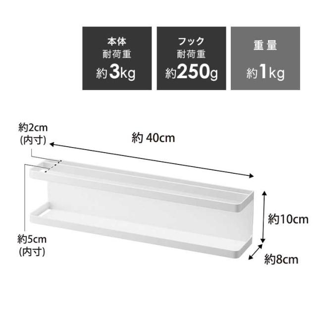 Details マグネット冷蔵庫横サプリ&調味料ラック 冷蔵庫の横にマグネットで簡単取り付けできるラック。常備薬やサプリメント、調味料を一括収納!置き場所に困る袋入り調味料やスパイス、オイル等をまとめて収納できます。幅の違う仕切りになっていて薄型の袋を立てかけることができます。サイズの違うトレーの収納にも便利です。フックが付いているので小物も吊り下げて収納可能。マグネットがつくキッチンパネルにも設置できます。 ブランド名 tower / タワー 品番 2188/2189 JAN 4903208021883/4903208021890 サイズ 約H10×W40×D8cm 重量 約1kg 耐荷重 約3.5kg(本体:約3kg、フック1つあたり:約250g) 素材 本体:スチール(粉体塗装) マグネット 滑り止め:シリコーン 取り付け可能な壁面 マグネットのつく平らな面・スチール壁面 付属品 フック×2 生産国 中国 ご注意 ※食洗機・レンジ対応不可 ※表記サイズより、多少の誤差があることがございます。 ※商品の画像はできる限り実物に近づけるよう配慮しておりますが、お使いのモニターやご覧になる環境によりましてはカラーの見え方に差が出る場合がございます。ご了承くださいませ。 関連キーワード キッチングッズ 簡単 スタイリッシュ スッキリ 無地 スマート 生活雑貨 パスタソース レトルト食品 整理用品 新生活 引越し 有効活用 洗濯機横 やまじつ タワーシリーズ 10代 20代 30代 40代 50代 60代 70代 80代 女性 女子 女の子 ガールズ レディース girl 男性 男子 男の子 ボーイズ メンズ boy 父 母 おかあさん おとうさん パパ ママ シニア おじいちゃん おばあちゃん お爺ちゃん お婆ちゃん 祖父 祖母 じいじ ばあば バースデー 誕生日 プレゼント ギフト お祝い お返し 粗品 景品 送別会 イベント 母の日 父の日 クリスマス クリスマスプレゼント バレンタイン チョコ以外 ホワイトデー おしゃれ オシャレ お洒落 かわいい 可愛い カワイイ シンプル かっこいい カッコいい カッコイイ | |||||||||||||