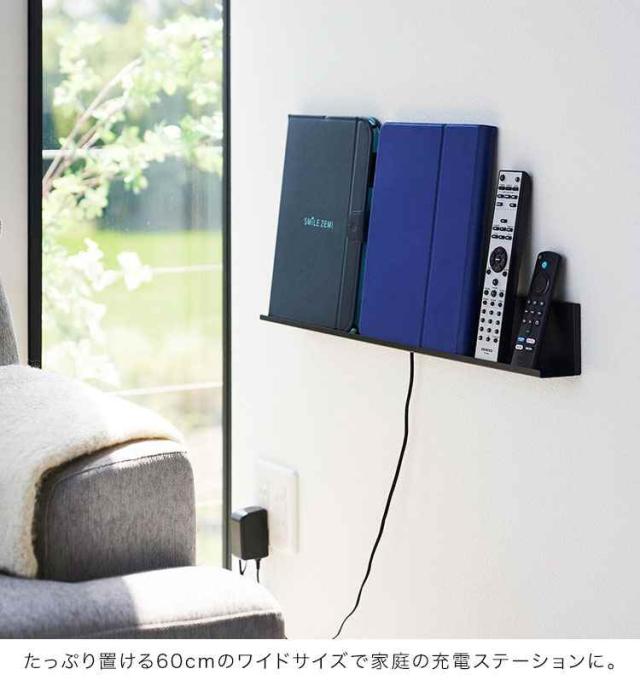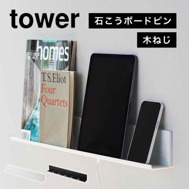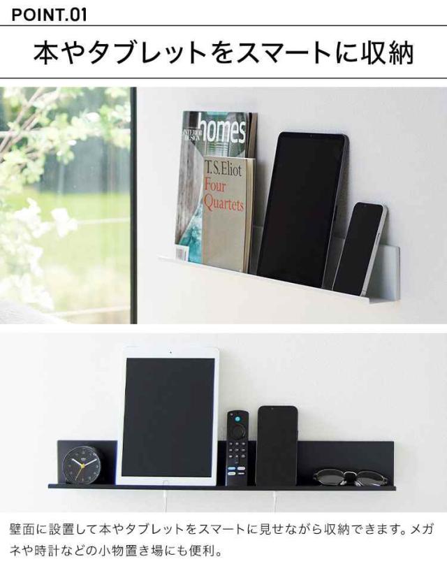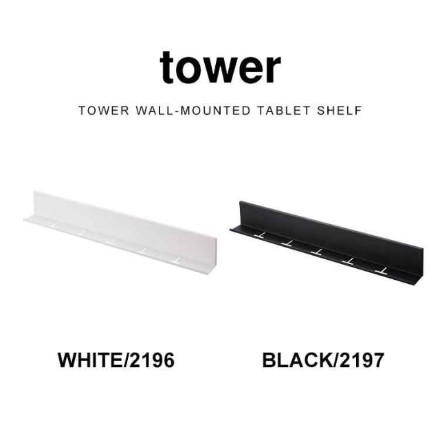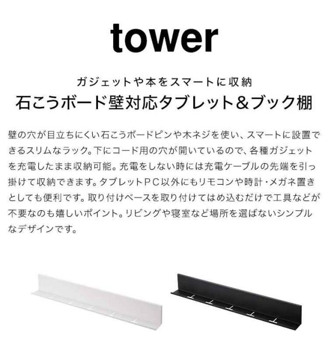 山崎実業 石こうボード壁対応タブレット&ブック棚 タワー tower 充電 棚 ラック 壁面 立てかけ 壁掛け スマホ タブレット 立て ウォールシェルフ 本棚 小物 置き場 2196 2197 ipad iphone Android おしゃれ ブラック ホワイト シンプル スリム ベッドサイド 寝室 幅 60cm