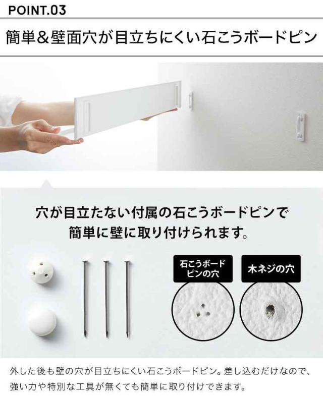 Details 石こうボード壁対応タブレット&ブック棚 壁の穴が目立ちにくい石こうボードピンや木ネジを使い、スマートに設置できるスリムなラック。下にコード用の穴が開いているので、各種ガジェットを充電したまま収納可能。充電をしない時には充電ケーブルの先端を引っ掛けて収納できます。タブレットPC以外にもリモコンや時計・メガネ置きとしても便利です。取り付けベースを取り付けてはめ込むだけで工具などが不要なのも嬉しいポイント。リビングや寝室など場所を選ばないシンプルなデザインです。 ブランド名 tower / タワー 品番 2196/2197 JAN 4903208021968/4903208021975 サイズ 約W60×D6×H8cm 重量 約700g 素材 本体:スチール(粉体塗装) 取り付けベース×2:ABS樹脂 耐荷重 約3kg 付属品 石こうボードピンセット×4、木ネジ×4 生産国 中国 ご注意 ※表記サイズより、多少の誤差があることがございます。 ※商品の画像はできる限り実物に近づけるよう配慮しておりますが、お使いのモニターやご覧になる環境によりましてはカラーの見え方に差が出る場合がございます。ご了承くださいませ。 関連キーワード インテリア 立てて 飾る ディスプレイ スタイリッシュ 石こうボードピン モノトーン スマート スリム 省スペース コンパクト 小さめ スタイリッシュ ナチュラル モダン ワイド リモコン 時計 メガネ 本 雑誌 無地 北欧 シンプル おしゃれ オシャレ お洒落 モノトーン スマート 新生活 引越し 引っ越し 新築 結婚 祝い 新居 会社 オフィス デスク ワークスペース 応接室 居間 客間 道具 男性 女性 人気 新年 年末年始 新生活 引越し 模様替え 20代 30代 40代 50代 60代 70代 80代 女子 女の子 レディース メンズ 父 母 おかあさん おとうさん パパ ママ シニア おじいちゃん おばあちゃん お爺ちゃん お婆ちゃん 祖父 祖母 じいじ ばあば バースデー 誕生日 プレゼント プチ ミニ ギフト お祝い お返し 粗品 景品 送別会 イベント 母の日 父の日 クリスマス クリスマスプレゼント バレンタイン_チョコ以外_ホワイトデー おしゃれ オシャレ お洒落 かわいい 可愛い カワイイ シンプル かっこいい カッコいい カッコイイ 便利 インテリア インテリア雑貨 収納雑貨 生活雑貨 整理整頓 整理用品 スペース 有効活用 山実 やまじつ ヤマジツ やまざきじつぎょう たわー towerシリーズ ブランド インテリアブランド 浮かせて収納 浮かせる収納 デッドスペース スマートフォン タブレットPC ガジェット収納 サイドテーブル | |||||||||||||
