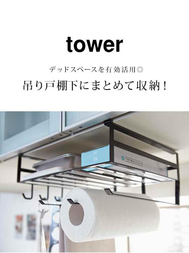 キッチン 収納 戸棚下多機能ラック 山崎実業 タワー キッチンペーパーホルダー キッチン収納 ラップホルダー 戸棚下ラック tower ホワイト ブラック 白 黒 キッチンツールフック 戸棚 2845 2846 棚下 吊り戸棚下 yamazaki すっきり おしゃれ 便利 整理 収納 送料無料