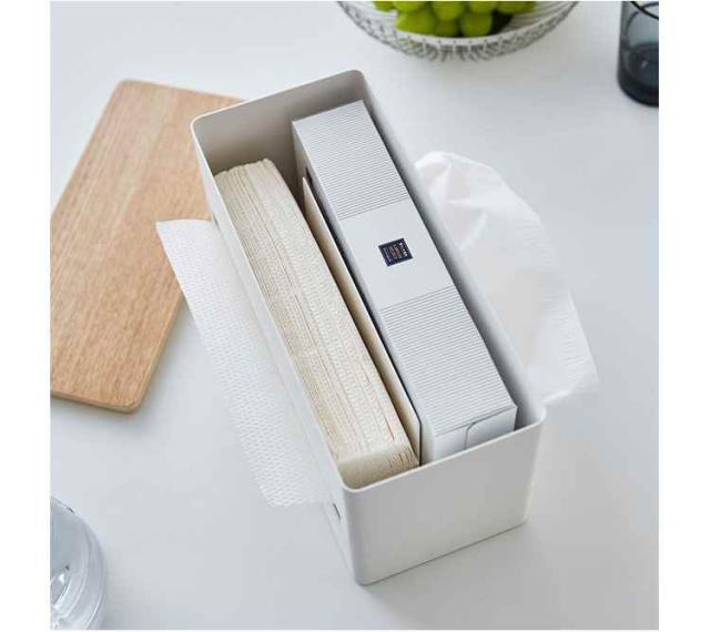 対応サイズ:一般的なサイズのティッシュ・ペーパータオル、高さ約10.5cmまでのティッシュボックス(※高さ約5cm以内のティッシュボックス2個)