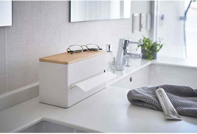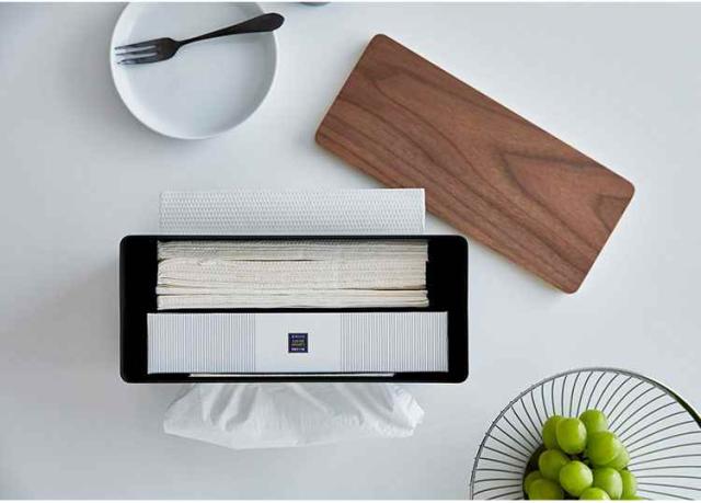両面どちらからでも取り出せる、RINの両面ティッシュケース仕切りがついているので片側にはキッチンペーパー、片側にはティッシュペーパーなど…
