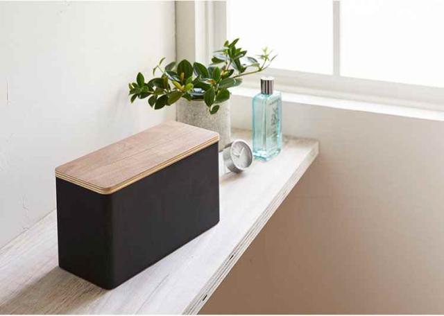 サニタリー 収納 ケース リン RIN 小物入れ 北欧 おしゃれ 山崎実業 ナチュラル ブラウン ホワイト ブラック 白 黒 木 ウッド シンプル 生理用品 トイレ コスメ 化粧品 コットン モダン フタ付き ふた付き コスメケース お洒落 収納ボックス 整理 雑貨 スチール 4807 送料無料