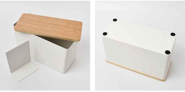 | 素材 | 本体・仕切り板:スチール (粉体塗装)蓋:天然木積層合板(ラッカー塗装) |