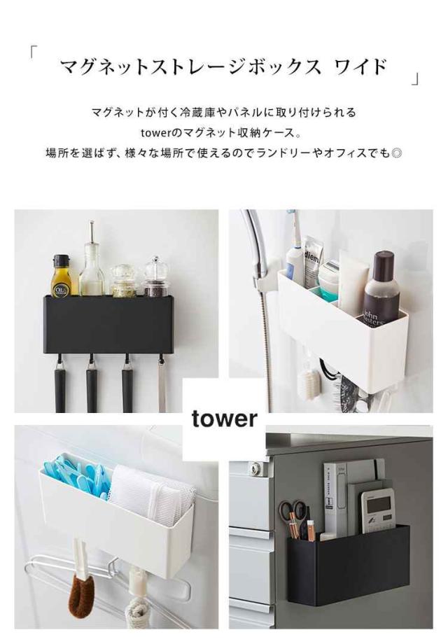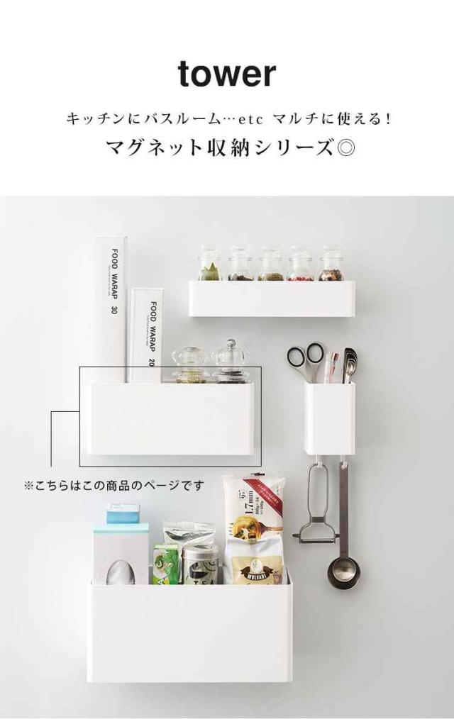 キッチン収納 小物 便利グッズ ストレージボックス タワー tower マグネット シンプル 壁面収納 磁石 キッチン バスルーム 収納 ランドリー 脱衣所 洗面所 ケース ラック 小物入れ 山崎実業 ホワイト ブラック 便利雑貨 フック 調味料入れ オフィス 収納 BOX 浴室 黒 白 台所