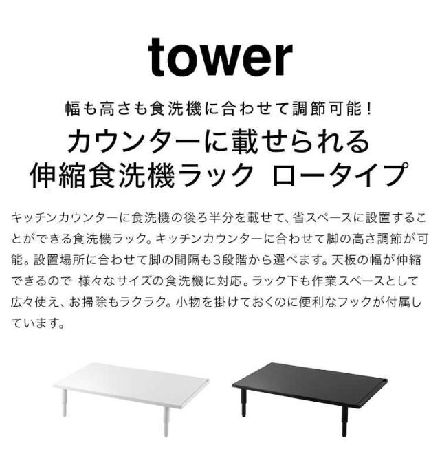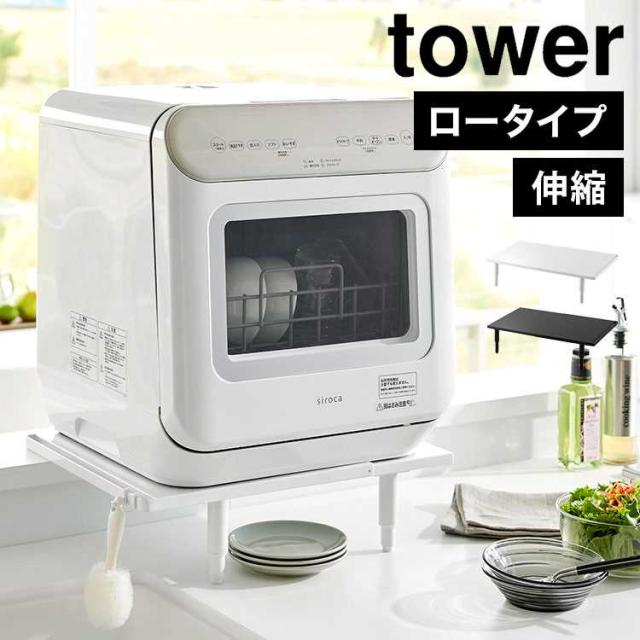 カウンターに載せられる伸縮食洗機ラック タワー ロータイプ 山崎実業 食洗機 置き台 伸縮 食洗機ラック 食洗器ラック 食洗機台 棚 tower 公式 5303 5304 ホワイト ブラック 台 伸縮ラック 小型 コンパクト 省スペース シンクサイド キッチン 工事不要 シンプル おしゃれ