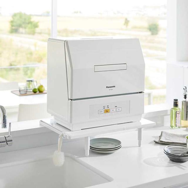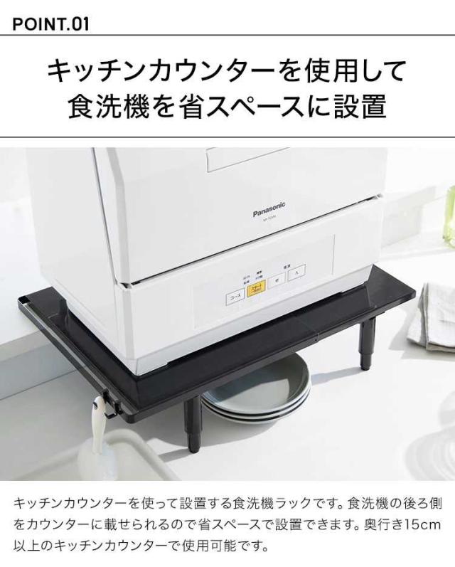 キッチンカウンターに食洗機の後ろ半分を載せて、省スペースに設置することができる食洗機ラックロータイプです!キッチンカウンターに合わせて脚の高さ調節が可能。