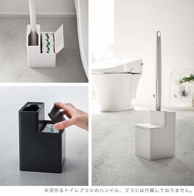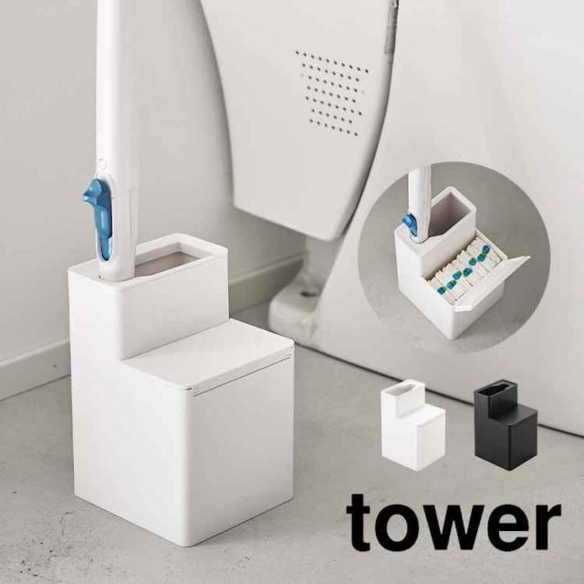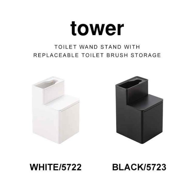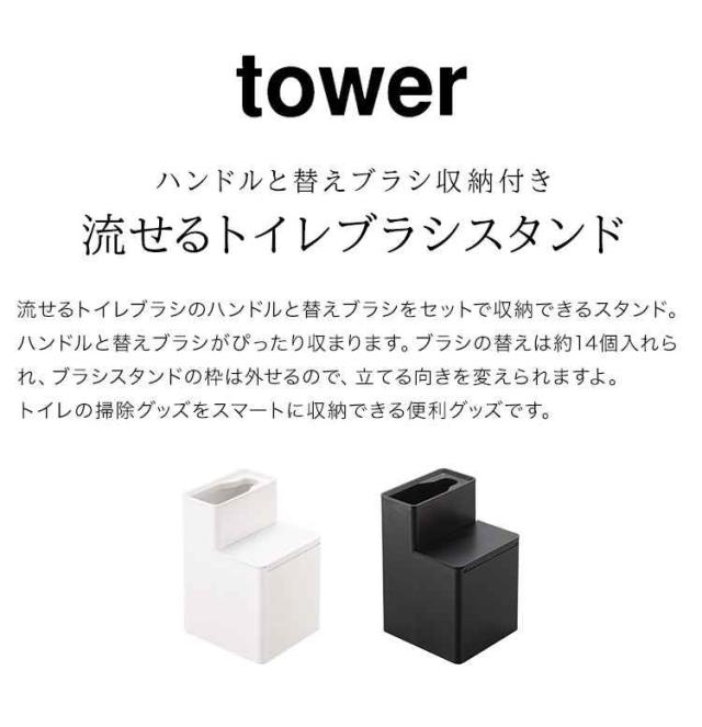 山崎実業 替えブラシ収納付き流せるトイレブラシスタンド タワー tower シンプル トイレ収納 ホワイト ブラック 省スペース コンパクト スリム 付け替え簡単 便利 左右変更可能 掃除グッズ 掃除用具 スタイリッシュ おしゃれ 取り替え式 トイレクリーナー 衛生的 替えブラシ