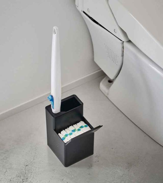 流せるトイレブラシのハンドルと替えブラシをセットで収納できるスタンド。ハンドルと替えブラシがぴったり収まります。ブラシの替えは約14 個入れられ、ブラシスタンドの枠は外せるので、立てる向きを変えられますよ。 トイレの掃除グッズをシンプルなデザインでスマートに収納できます。