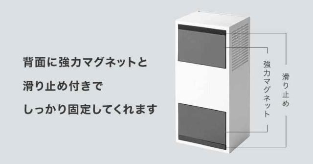 マグネットでも、置きでも設置できるtowerのツーウェイ消臭ビーズケース。市販の消臭ビーズ収納ケースをそのまま置くとどうしても生活感が出てしまいますよね。そんな時はこちらのシンプルなケースに消臭ビーズを入れ替えれば、スタイリッシュな印象に早変わり。