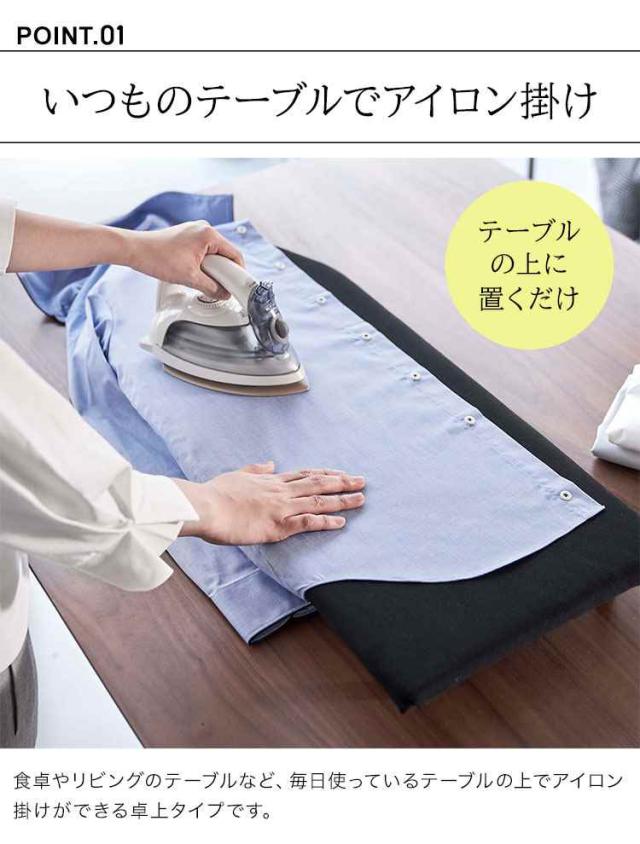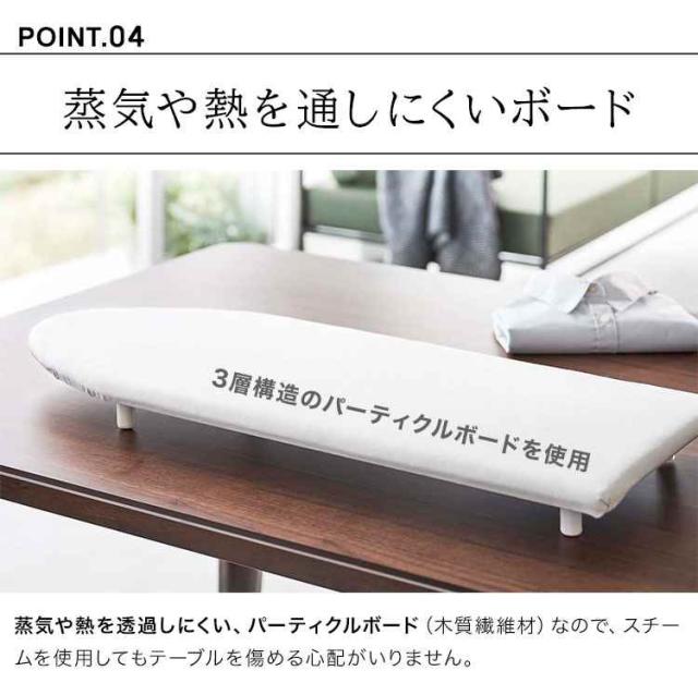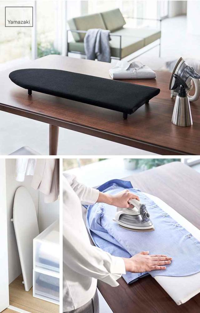 脚付きになり卓上でもスチームアイロンが使えて便利◎アイロン掛けがしやすい舟型タイプのtowerの卓上脚付きアイロン台。 3層構造のパーティクルボード(木材の細片やチップを固めて作った板)を採用したことで蒸気や熱を透過させず、スチームを使用してもテーブルを傷める心配がいりません。脚裏には滑り止めも付いているので安定感もしっかりあります。使用しない時は、ちょっとした隙間に入れ込んで収納できる薄型なのも嬉しいポイントです。