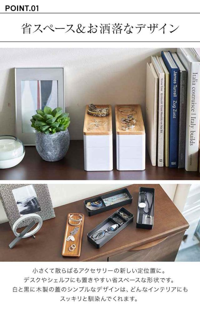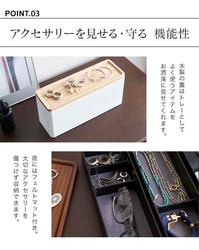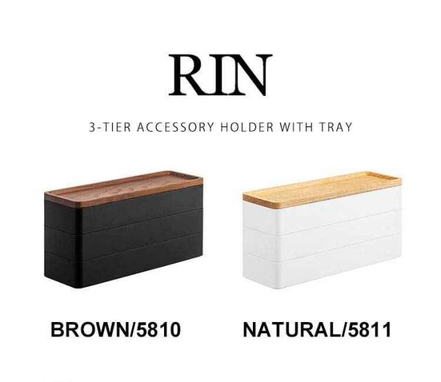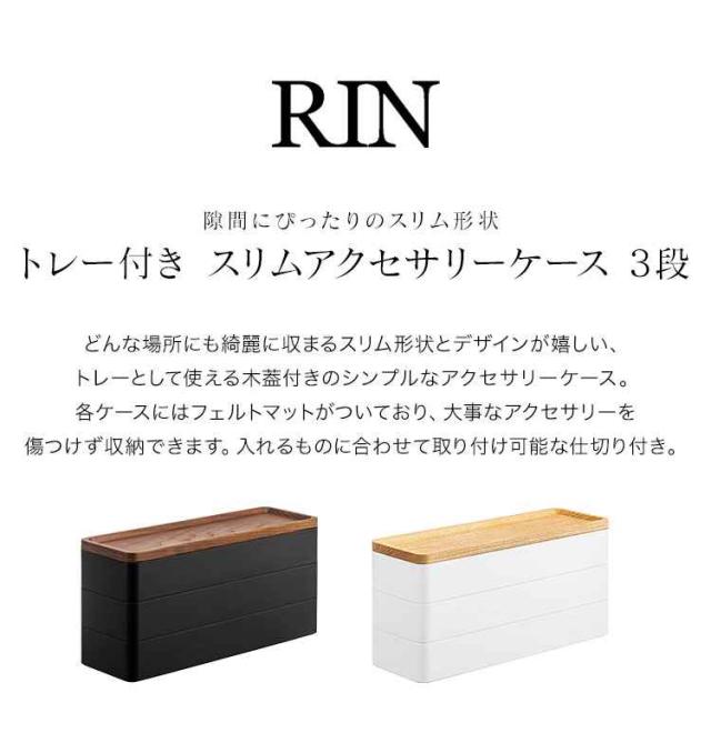 山崎実業 トレー付きスリムアクセサリーケース3段 リン RIN ブラウン ナチュラル アクセサリートレイ アクセサリー収納 収納雑貨 小物収納 小物入れ 一時置き トレイ ジュエリー ボックス 仕切り付き 指輪 ピアス おしゃれ 木目 木製 天然木 ウッド 北欧 シンプル 黒 白