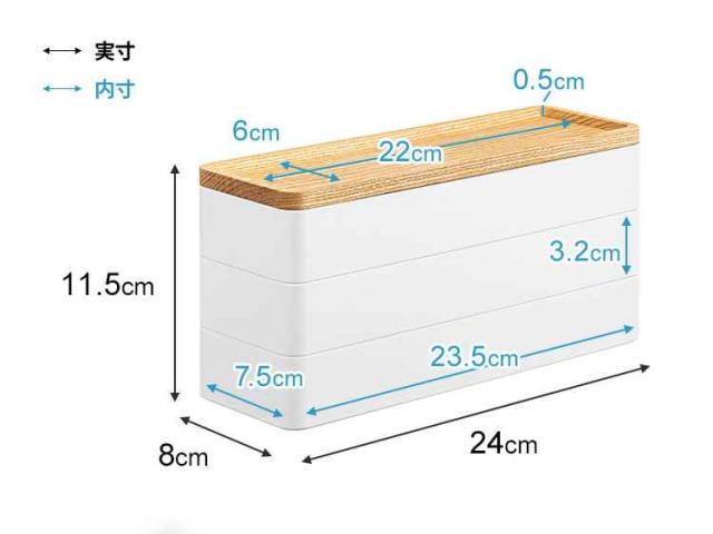内寸 本体:約H3.2×W23.5×D7.5cm 蓋:H0.5×W22×D6cm