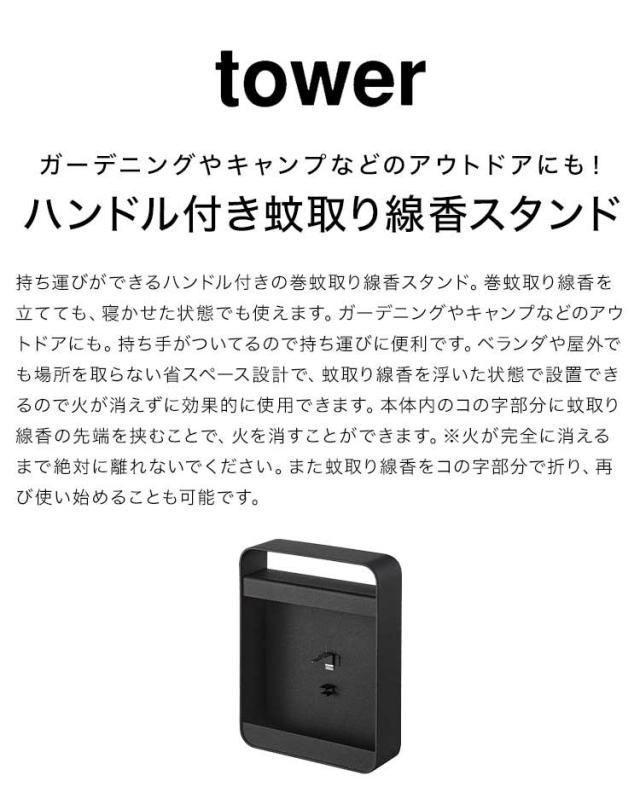ハンドル付き蚊取り線香スタンド タワー 山崎実業 5849 tower 蚊取り線香入れ 蚊取り線香ホルダー おしゃれ キャンプ アウトドア シンプル 虫対策 リビング 寝室 ベランダ 玄関 ガーデニング 庭 バーベキュー レジャー 夏 予防 対策 かとり 虫除け グッズ インテリア 白 黒