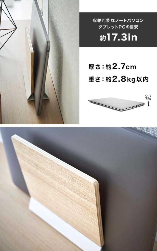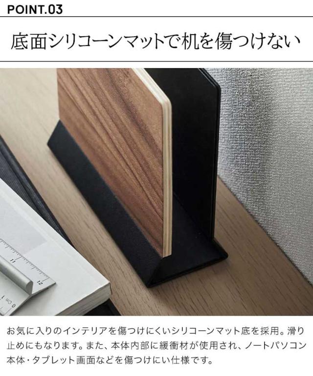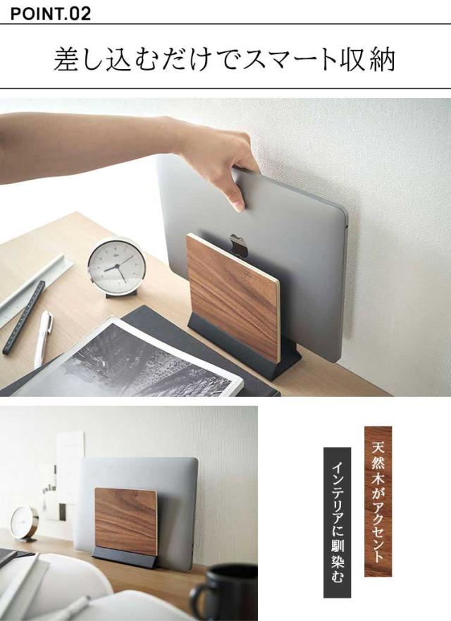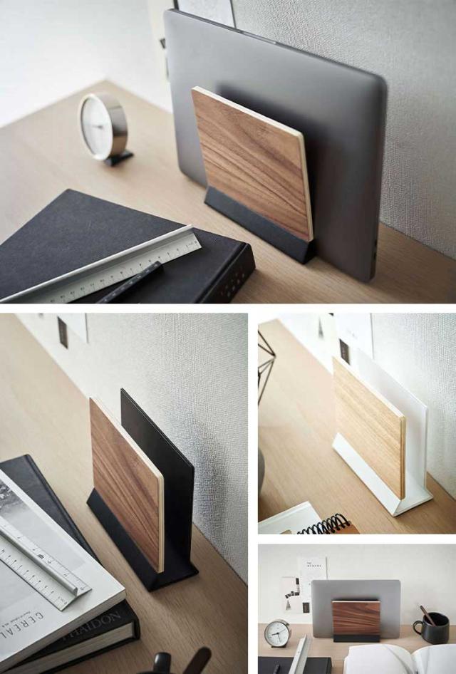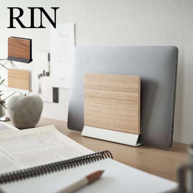 山崎実業 スリムノートパソコンスタンド リン RIN 5855 5856 ノートPC 収納 立て掛け リモートワーク パソコン スタンド 卓上 片付け タブレット 雑誌 新聞 ファイル 置き場 定位置 おしゃれ 木目調 シンプル インテリア 馴染む ブラウン ナチュラル 黒 白 オフィス デスク