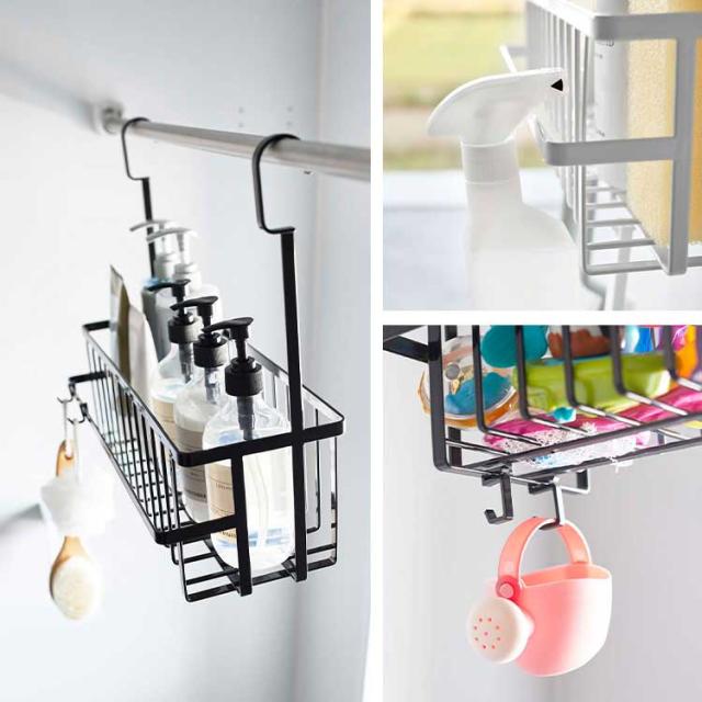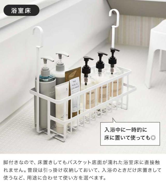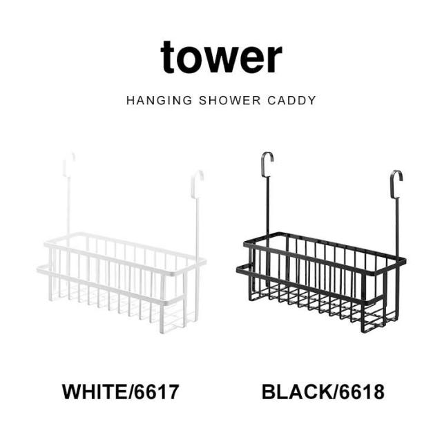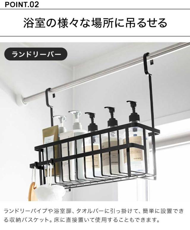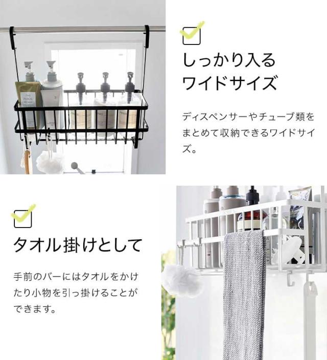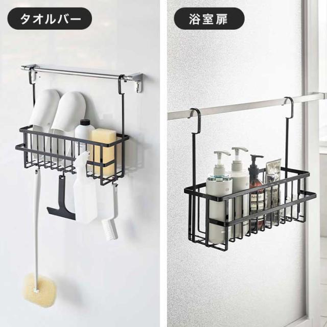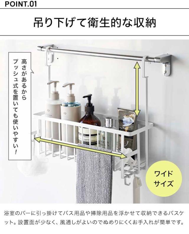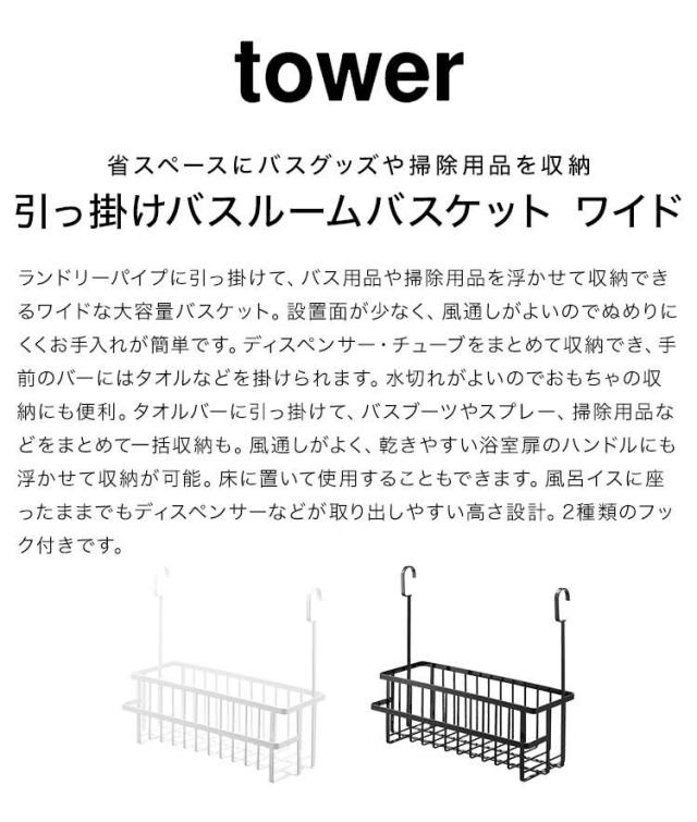 引っ掛けバスルームバスケット ワイド タワー 山崎実業 6617 6618 tower ハンギングバスケット 引っ掛け かご 収納 大容量 浴室 お風呂場 バスグッズ 浮かせる収納 ランドリーバー タオルバー 浴室扉 吊り下げ バス小物 シャンプー リンス コンディショナー ボディソープ