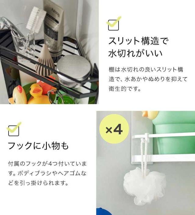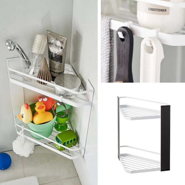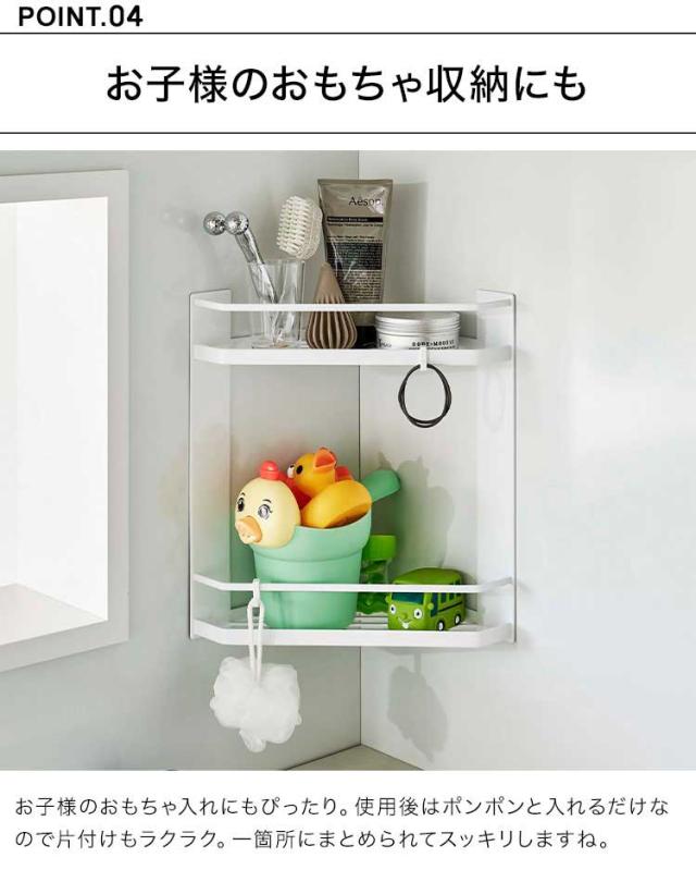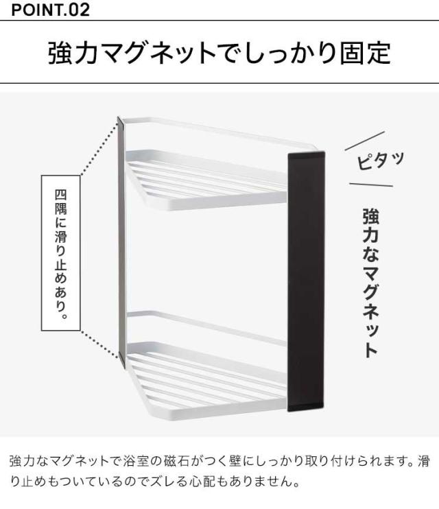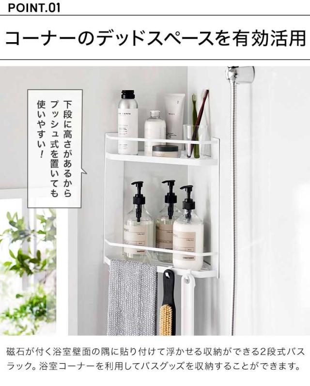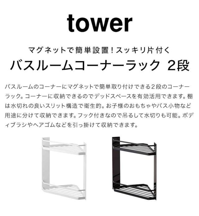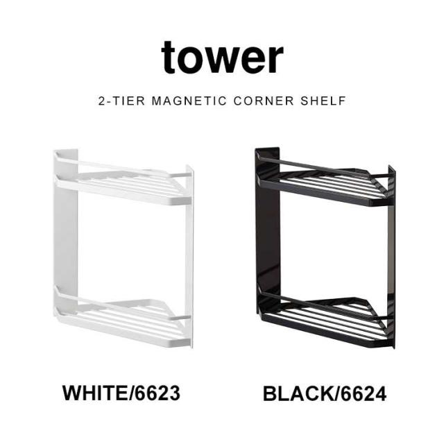 マグネットバスルームコーナーラック 2段 タワー 山崎実業 6623 6624 tower 磁石 強力 棚 壁面 収納 浴室 お風呂場 角 隅 整理整頓 シンプル ボトル置き ディスペンサー ソープ バス用 入れ物 小物入れ おもちゃ置き 三角 タオル 掃除用品 引っ掛け スリット 衛生的 バス小物