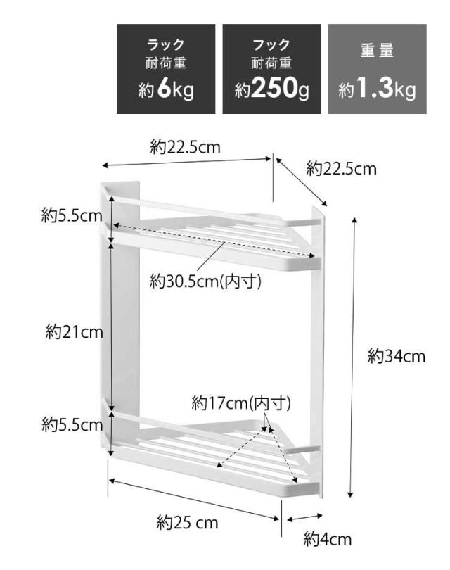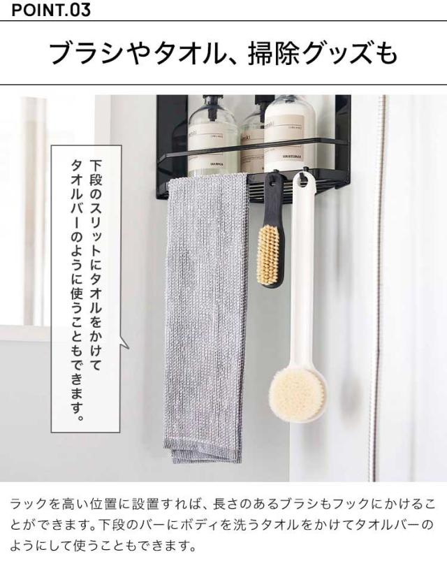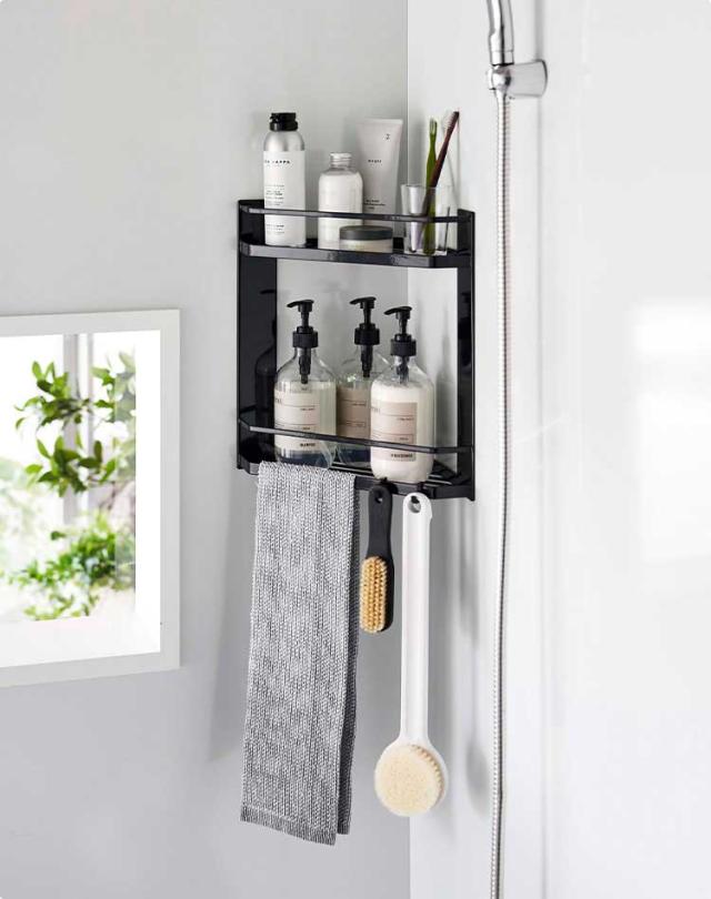 Details マグネットバスルームコーナーラック 2段 バスルームのコーナーにマグネットで簡単取り付けできる2段のコーナーラック。コーナーに収納できるのでデッドスペースを有効活用できます。棚は水切れの良いスリット構造で衛生的。お子様のおもちゃやバス小物など用途に分けて収納できます。フック付きなので吊るして水切りも可能。ボディブラシやヘアゴムなどを引っ掛けて収納できます。 ブランド名 tower / タワー 品番 6623/6624 サイズ 約H34×W22.5×D22.5cm 内寸 各段:約W21.5×D21.5×H26.5cm(下段) H5.5cm(上段) 重量 約1300g 耐荷重 約6kg(1段あたり:約2.5kg フック1つあたり:約250g) 素材 本体:スチール(ユニクロメッキ+粉体塗装)マグネット 滑り止め:シリコーン 付属品 フック×4 生産国 中国 ご注意 ・マグネット面をペースメーカー等の電子医療機器に近づけることは、動作を損なう恐れがあり、大変危険です。電子機器・磁気媒体(PC・スマートフォン・磁気カード)に近づけるとデータはそん、磁化されて使用できなくなることがありますので、ご注意ください。 ・マグネットを長期間貼ったままにしますと、設置面にマグネットの跡がついたり壁面が変色する場合がありますので、月に一度は取り外し壁面やマグネットを洗浄してください。 ※表記サイズより、多少の誤差があることがございます。 ※商品の画像はできる限り実物に近づけるよう配慮しておりますが、お使いのモニターやご覧になる環境によりましてはカラーの見え方に差が出る場合がございます。ご了承くださいませ。 関連キーワード シンプル ホワイト ブラック おしゃれ スマート 白 黒 壁面収納 シャンプー コンディショナー リンス トリートメント 洗顔 タオルバー フック ボディブラシ ヘアゴム 簡単取り付け スッキリ 空間 デッドスペース 有効活用 吊るす 浮かす キッズ 滑り止め スリット構造 水切れ あか 滑り 防止 プッシュ式 1ヶ月 2ヶ月 3ヶ月_ 4ヶ月_ 5ヶ月_ 6ヶ月_ 7ヶ月_ 8ヶ月_ 9ヶ月_ 10ヶ月_ 11ヶ月_ 12ヶ月_ 1歳 2歳 3歳 4歳 5歳 6歳 7歳 8歳 9歳 10歳 10代 20代 30代 40代 50代 60代 70代 80代 小学 1年 2年 3年 4年 5年 6年 一年 二年 三年 四年 五年 六年 生 小学校 中学校 高校 大学 小学生 中学生 高校生 大学生 保育園 保育所 幼稚園 先生 学生 学校 入園 入学 準備 入園準備 入学準備 通園 通学 通勤 子ども 子供 こども キッズ ジュニア 赤ちゃん ベイビー ベビー 女性 女子 女の子 ガールズ レディース 男性 男子 男の子 ボーイズ メンズ シニア おじいちゃん おばあちゃん お爺ちゃん お婆ちゃん 祖父 祖母 じいじ ばあば 誕生日 プレゼント プチ ミニ ギフト お祝い お返し 粗品 景品 送別会 イベント 母の日 父の日 クリスマス クリスマスプレゼント バレンタイン_チョコ以外 ホワイトデー おしゃれ オシャレ お洒落 かわいい 可愛い カワイイ シンプル かっこいい カッコいい カッコイイ | |||||||
