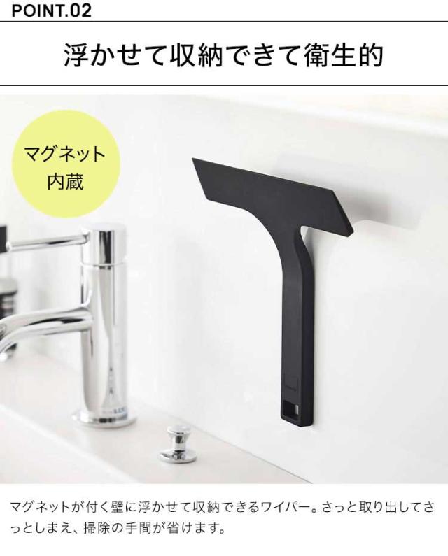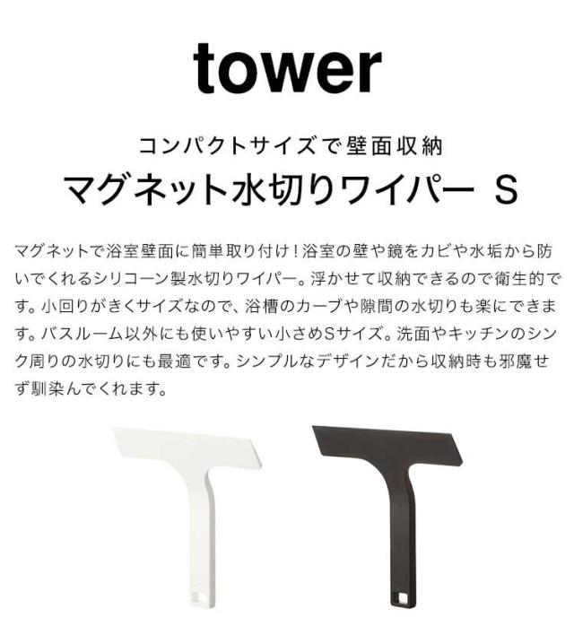 マグネット水切りワイパー タワー 山崎実業 7031 7032 tower 水切り 掃除用具 スキージー 磁石 小さめ 短め スクイージー お風呂掃除 窓掃除 鏡 水あか ミラー 浴室 お風呂場 壁 キッチン 洗面所 台所 シンク ハンドワイパー 手持ち 片手 シンプル 白黒 おしゃれ スマート