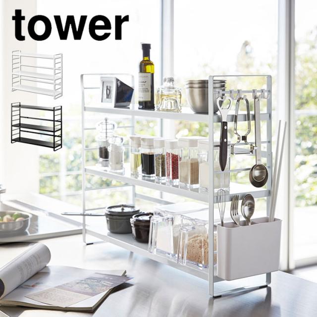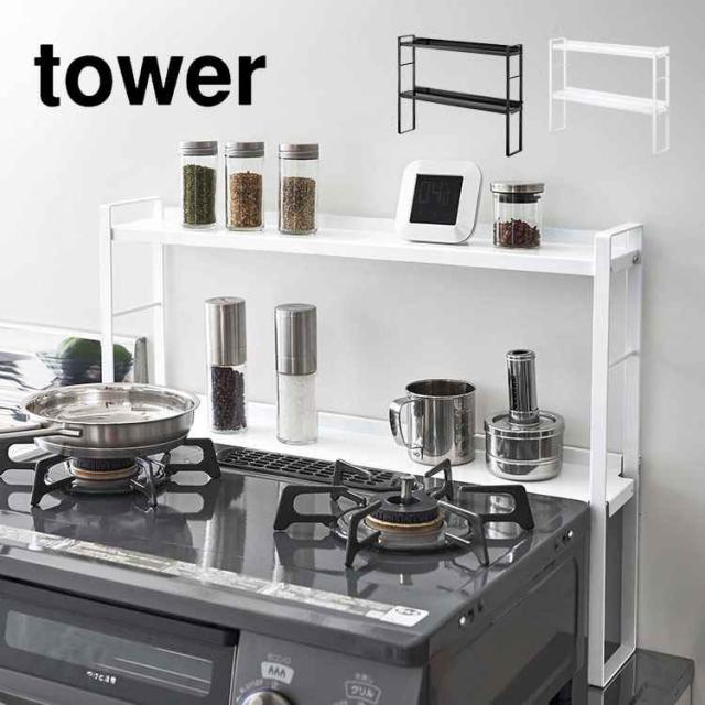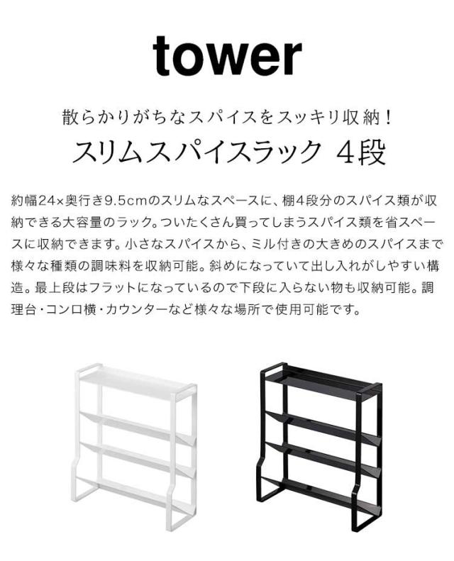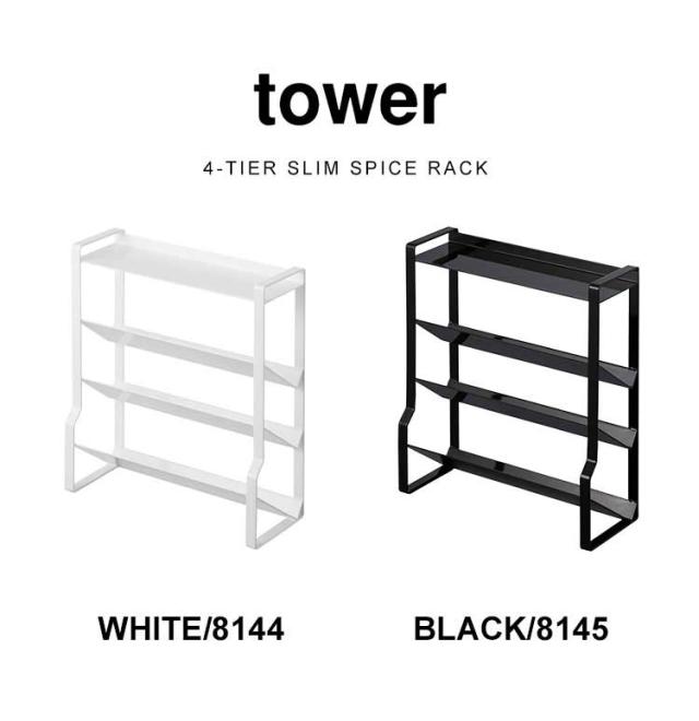 スリムスパイスラック タワー 4段 山崎実業 tower 8144 8145 キッチン収納 棚 調味料ラック スリム 大容量 調味料収納 スパイスラック 斜め 整理整頓 省スペース コンパクト 台所 コンロ周り コンロ奥 調味料入れ 棚 シンプル ホワイト ブラック 隙間 スタイリッシュ