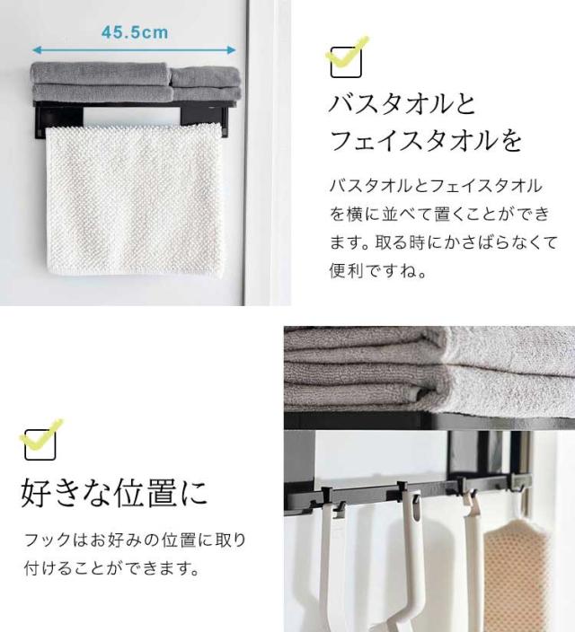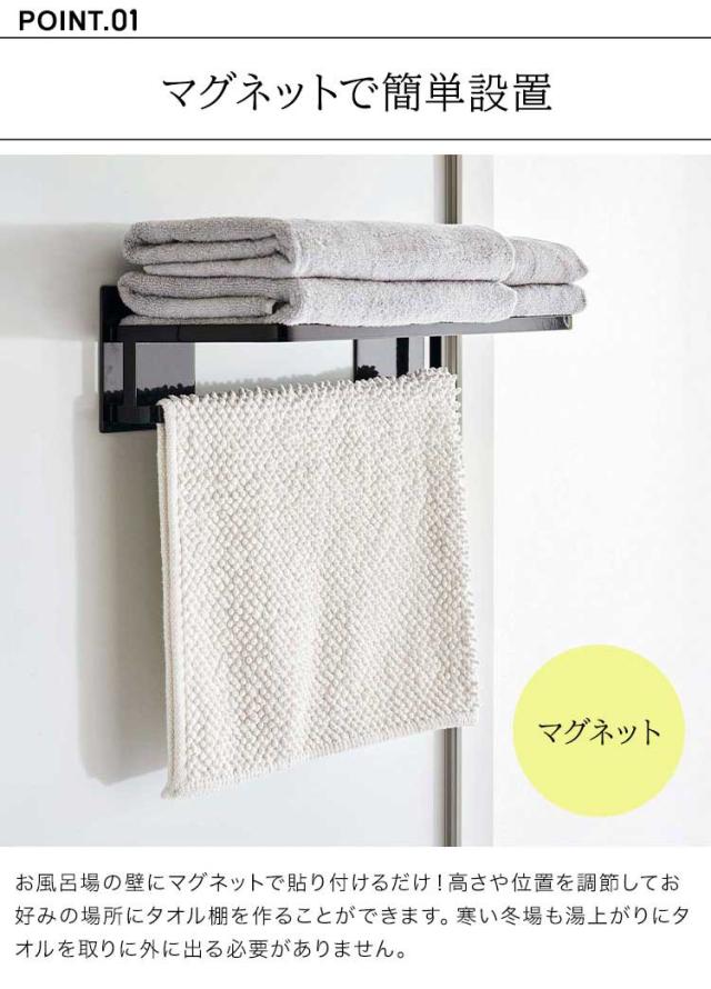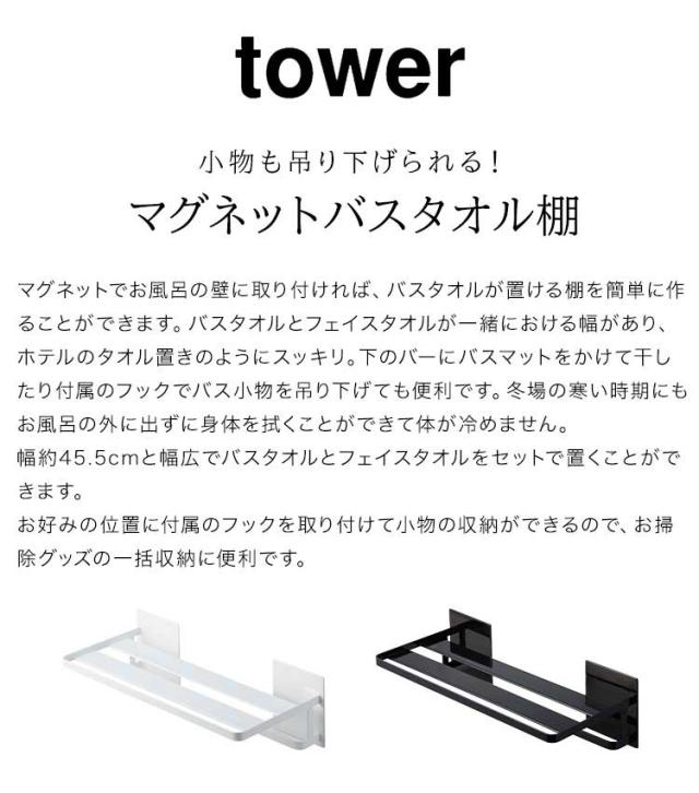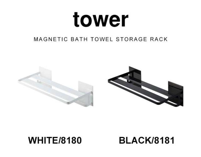 マグネットバスルームバスタオル棚 タワー 山崎実業 8180 8181 tower 浴室 お風呂場 タオル掛け 壁 マグネット 磁石 磁力 磁気 強力 穴あけ不要 シンプル バスルーム お風呂 洗面所 掃除用品 収納ラック バスタオル フェイスタオル 小物 吊り下げ 収納 白 黒