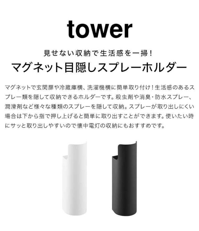 マグネット目隠しスプレーホルダー タワー 山崎実業 スプレー缶 収納 ケース ホルダー tower 目隠し収納 磁石 おしゃれ シンプル スタイリッシュ 玄関収納 キッチン スプレー缶カバー 殺虫剤 防水スプレー 消臭スプレー 懐中電灯 壁面収納 ホワイト ブラック 8237 8238 公式