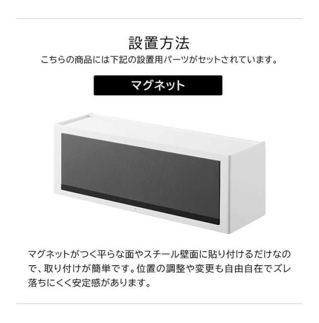 Details 【マグネットカトラリーケース】 マグネットで壁に取り付けても置いても使える!カトラリーがサッと取り出しやすい便利なケースです。シンプルでスタイリッシュなデザインなので場所を選ばずスマートに設置でき、積み重ねても使用することができます。斜めに開口するフラップ式で片手で簡単にカトラリーを取り出すことができます。天板はトレーになっているので小物置きとしても便利。冷蔵庫横などにマグネットで設置したり、スパイスニッチやダイニングなどマグネットがつかない場所に置いても使用するこができるので便利です。 ブランド名 tower / タワー JAN 4903208084628 / 4903208084635 品番 8462 / 8463 サイズ [外寸] 本体:約W26×D8×H9cm [内寸] ケース:約W24.8×D6.5×H3.8cm 耐荷重 ケース:1.5kg トレー:500g 重量 約375g 素材 本体:ABS樹脂 マグネット 滑り止め:シリコーンゴム 使用できる面 マグネットがつく平らな面・スチール面 生産国 中国 ご注意 ※表記サイズより、多少の誤差があることがございます。 ※商品の画像はできる限り実物に近づけるよう配慮しておりますが、お使いのモニターやご覧になる環境によりましてはカラーの見え方に差が出る場合がございます。ご了承くださいませ。 関連キーワード マグネットカトラリーケース タワー 山崎実業 tower 箸入れ カトラリー 収納 トレー 蓋付き スプーン フォーク ナイフ 磁石 浮かせる収納 8462 8463 置き 壁面収納 フラップ スタッキング可能 キッチン 整理整頓 スタイリッシュ シンプル 省スペース 整理整頓 無地 モノトーン 公式 ホワイト ブラック おしゃれ カトラリー入れ スリム 積み重ね 浮く キッチングッズ ダイニング カウンター スリム 卓上 小物トレー トレイ フタ付き ふた付き マルチケース 白 黒 新生活 便利 yamazaki 山実 やまじつ ヤマジツ やまざきじつぎょう たわー towerシリーズ ブランド | |||||||||||||||||