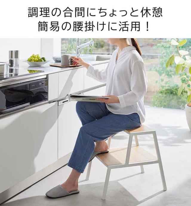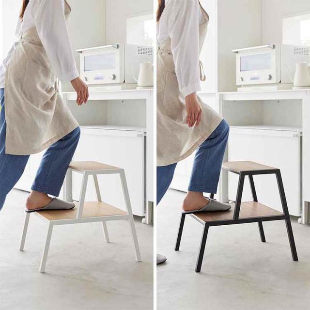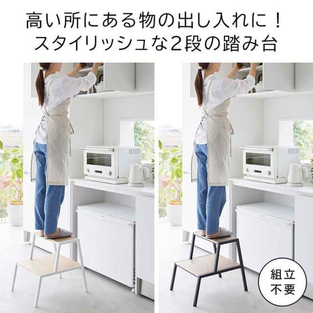 踏み台 タワー 2段 45cm 山崎実業 tower 台 脚立 1467 1468 公式 キッチン ステップ ふみ台 おしゃれ スタイリッシュ ホワイト ブラック 木製 ウッド 北欧 完成品 組立不要 サイドテーブル スツール 幅広 花台 プランター台 高級感 棚 洗面所 玄関 腰掛け