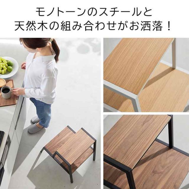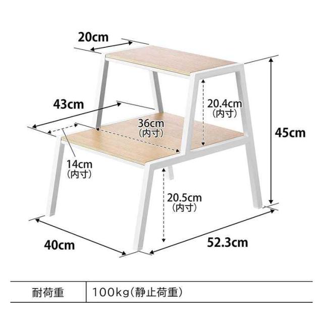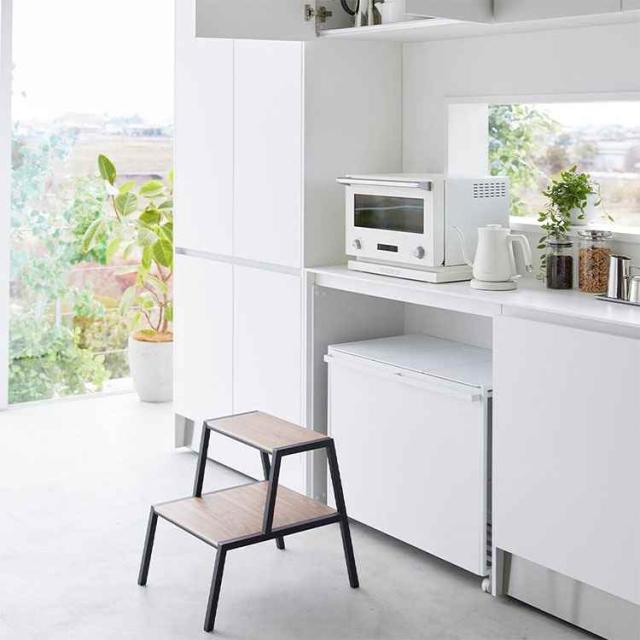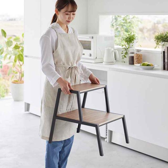 高い場所にある物が取り出しやすく安定感のある大きな踏面の踏み台2段。小さなお子さまのいらっしゃるご家庭でも安心してお使いいただけるようなデザイン◎足を乗せられるスペースが広く安定感があるので安心して使用できます。上品でインテリアに馴染むスチールと木の組み合わせがオシャレなデザインなのも◎完成品のままお届けしますので、組立不要です。