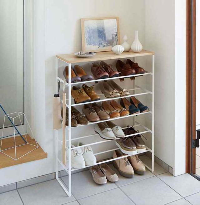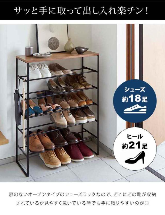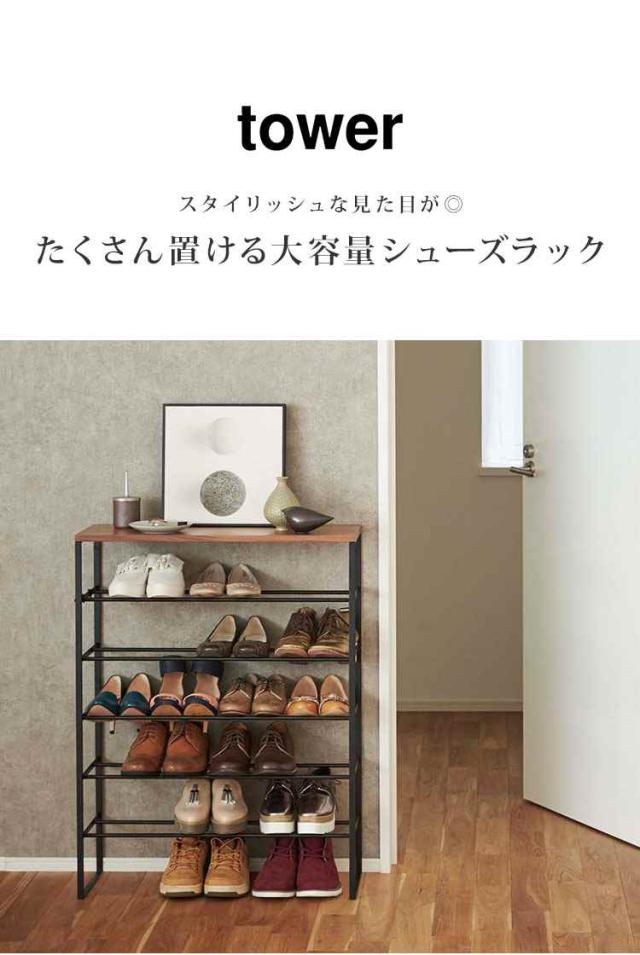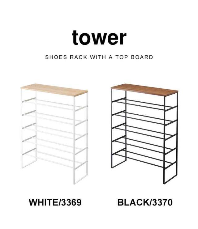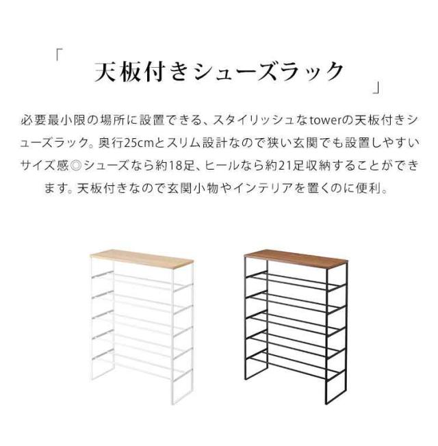 シューズラック スリム 省スペース おしゃれ 山崎実業 タワー tower 靴箱 下駄箱 天板付きシューズラック スタイリッシュ シンプル ブラック ホワイト 白 黒 靴 収納 大容量 天板付き 5段 3369 3370 天然木 北欧 モダン 収納家具 玄関収納 ラック エントランス 送料無料