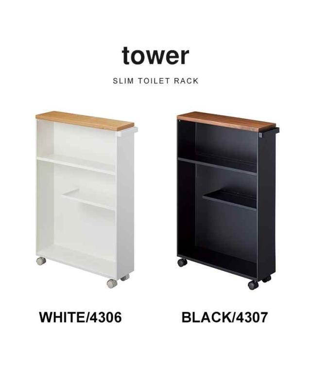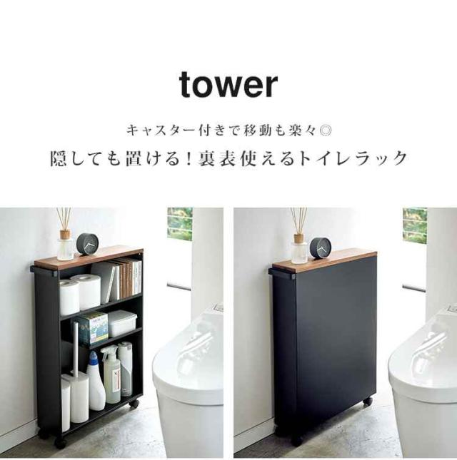 トイレラック スリム 薄型 トイレ 収納 狭い タワー tower 隙間収納 収納棚 すきま収納 山崎実業 キャスター付き サニタリーラック 棚 ハンドル付き ホワイト 白 ブラック 黒 省スペース シンプル 目隠し収納 トイレットペーパー置き 北欧 モダン スタイリッシュ 送料無料