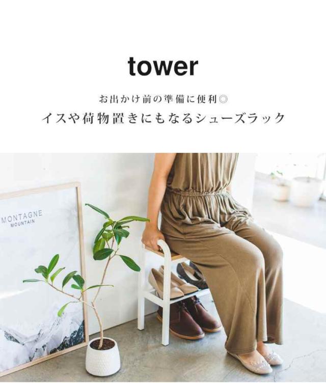 玄関ベンチ タワー tower シューズラック ベンチ 立ちやすい 収納 椅子 靴箱 スリム 玄関 小さめ 山崎実業 YAMAZAKI 靴入れ 靴置き ベンチシューズラック ホワイト ブラック 白 黒 玄関収納 ラック スタンド ハンドル付き 北欧 モダン シンプル ナチュラル 送料無料