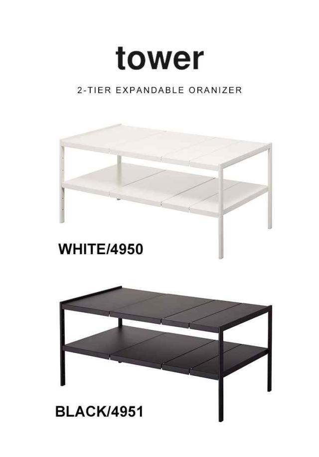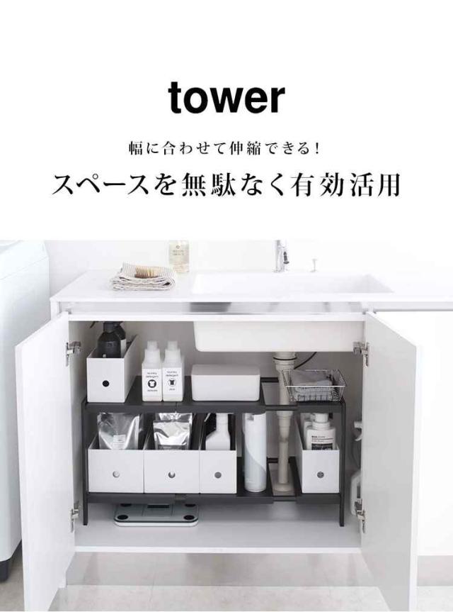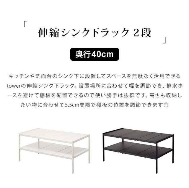 伸縮シンク下ラック キッチン 整理棚 山崎実業 タワー 伸縮棚 2段 シンク下 ラック 棚 キッチン棚 tower 収納 洗面台下 整理 幅調整 シンプル ホワイト ブラック 新生活 白 黒 奥行40cm モノトーン おしゃれ 4950 4951 キッチン収納 サニタリールーム ラック 洗面 送料無料