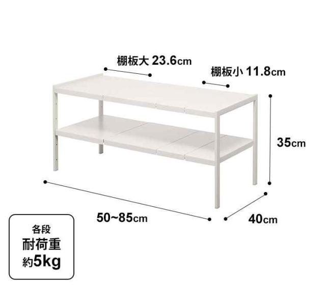 | サイズ | ■本体:約高さ35×幅50~85×奥行40cm □内寸:約高さ25.5~35×幅48~83×奥行40cm ( 棚の高さは約5.5cm間隔で取り付けが可能 ) |