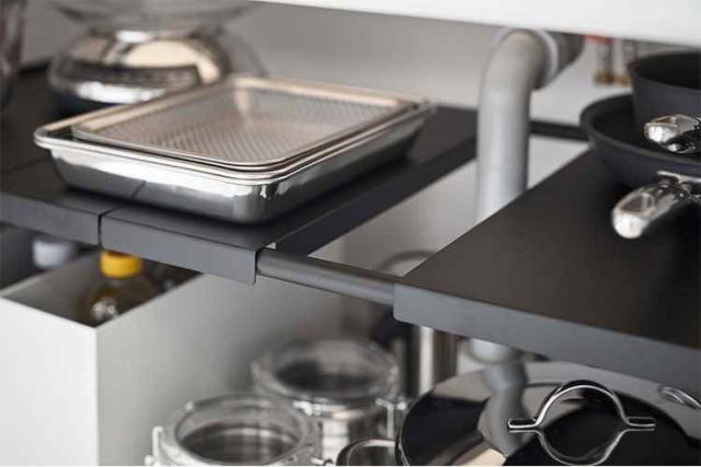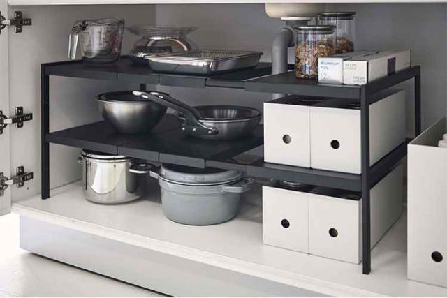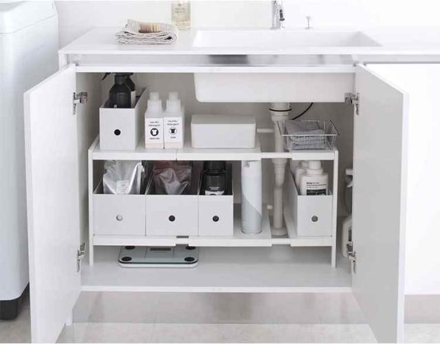 キッチンや洗面台のシンク下に設置してスペースを無駄なく活用できるtowerの伸縮シンク下ラック。