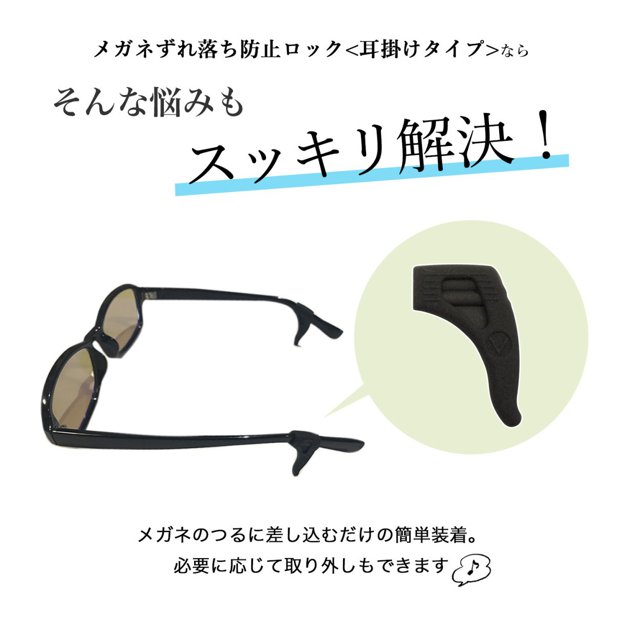 日本製 メガネ ずれ落ち防止ロック 耳かけ タイプ 眼鏡 ずり落ち ズリ落ち 防止 ズレ防止 滑り止め めがね 耳あて 耳掛け 固定 ストッパー すべり止め 耳 スポーツ シリコン 子供 男女兼用 落下防止 ほとんどの形状に対応 サングラス イヤーフック
