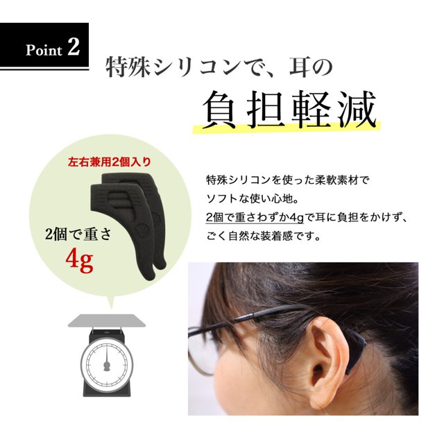 特殊シリコーン採用で耳が痛くなりにくい!ずり落ち防止!