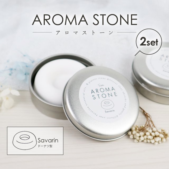 アロマストーン サヴァラン 2個セット ドーナツ形 缶入り かわいい おしゃれ 日本製 石膏 素焼き ホワイト アロマディフューザー 直径約50mm x 高さ約8mm シンプル アロマ ストーン プレート 石 プレゼント 精油 受け皿 エッセンシャルオイル 皿 車にも 国産