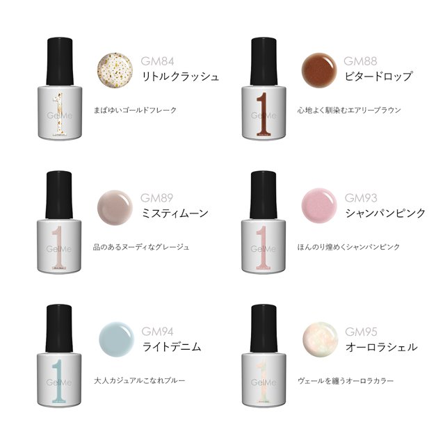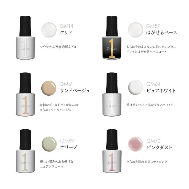 | 成分 | GM14 クリア: ジカルバミン酸ジHEMAトリメチルヘキシル、HEMA、ジメタクリル酸PEG-9、ヒドロキシシクロヘキシルフェニルケトン、(+/-)酸化鉄、コンジョウ、マンガンバイオレット、酸化チタン、マイカ、赤227、赤202、赤504、黄5 GM43 ヴァームボルドー/GM64 ピュアホワイト ジカルバミン酸ジHEMAトリメチルヘキシル、ジメタクリル酸PEG-9、HEMA、ヒドロキシシクロヘキシルフェニルケトン、メチルイソチアゾリノン、メチルクロロイソチアゾリノン、(+/-)酸化鉄、コンジョウ、マンガンバイオレット、酸化チタン、水酸化クロム、赤227、赤202、赤504、黄5 GM61 サンドベージュ: ジカルバミン酸ジHEMAトリメチルヘキシル、ジメタクリル酸PEG-9、HEMA、ヒドロキシシクロヘキシルフェニルケトン、(ポリエチレン/PET)ラミネート、メチルイソチアゾリノン、メチルクロロイソチアゾリノン、(+/-)酸化鉄、コンジョウ、マンガンバイオレット、酸化チタン、マイカ、赤227、赤202、赤504、黄5 GM69 オリーブ: ジカルバミン酸ジHEMAトリメチルヘキシル、ジメタクリル酸PEG-9、HEMA、ヒドロキシシクロヘキシルフェニルケトン、メチルイソチアゾリノン、メチルクロロイソチアゾリノン、(+/-)(PET/ポリメタクリル酸メチル)ラミネート、(PET/金)ラミネート、(ポリエチレン/PET)ラミネート、酸化鉄、コンジョウ、マンガンバイオレット、酸化チタン、水酸化クロム、酸化クロム、マイカ、赤227、赤202、赤504、黄5 GM70 ピンクダスト/GM72 クリアルビー/GM73 ローズクォーツ/GM78 ダスティーブルー/GM82 ペタルピンク/GM83 ハニーベージュ/GM84 リトルクラッシュ/GM88 ビタードロップ/GM89 ミスティムーン/GM93 シャンパンピンク/GM94 ライトデニム/GM95 オーロラシェル/GM100 キャラメルヌガー/GM101 ティーロゼ/GM102 メープルレッド: ジカルバミン酸ジHEMAトリメチルヘキシル、HEMA、ジメタクリル酸PEG-9、ヒドロキシシクロヘキシルフェニルケトン、メチルイソチアゾリノン、メチルクロロイソチアゾリノン、(+/-)(PET/ポリメタクリル酸メチル)ラミネート、(PET/金)ラミネート、(ポリエチレン/PET)ラミネート、酸化鉄、コンジョウ、マンガンバイオレット、酸化チタン、水酸化クロム、酸化クロム、マイカ、赤227、赤202、赤504、黄5 GM79 エクリュゴールド: ジカルバミン酸ジHEMAトリメチルヘキシル、HEMA、ジメタクリル酸PEG-9、ヒドロキシシクロヘキシルフェニルケトン、アクリル酸、メチルイソチアゾリノン、メチルクロロイソチアゾリノン、(+/-)(PET/ポリメタクリル酸メチル)ラミネート、(PET/金)ラミネート、(ポリエチレン/PET)ラミネート、酸化鉄、コンジョウ、マンガンバイオレット、酸化チタン、水酸化クロム、酸化クロム、マイカ、赤227、赤202、赤504、黄5 GM57 はがせるベース: ジカルバミン酸ジHEMAトリメチルヘキシル、ジメタクリル酸PEG-9、メタクリル酸ヒドロキシプロピル、ヒドロキシシクロヘキシルフェニルケトン、酢酸ブチル、マカデミア種子油、メチルイソチアゾリノン、メチルクロロイソチアゾリノン |