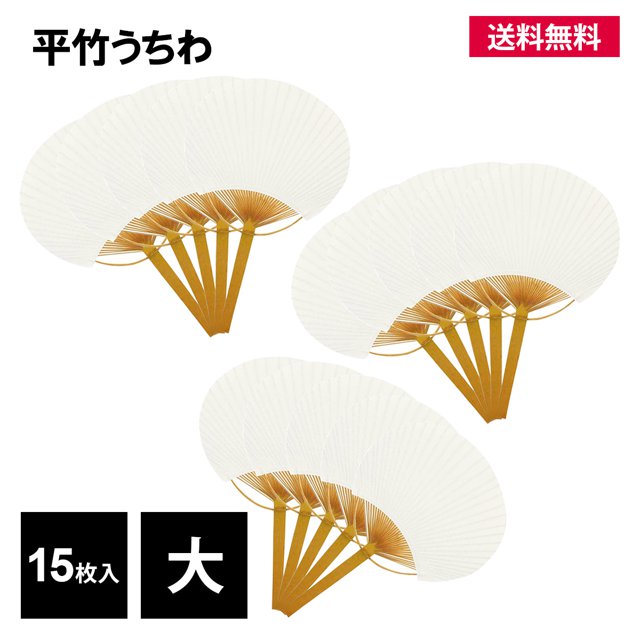 うちわ 団扇 竹 大 15枚入 白 無地 平竹 手作り オリジナル 書道 縦365mm×横230mm (持ちて含む)