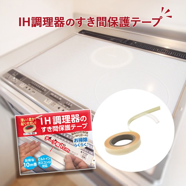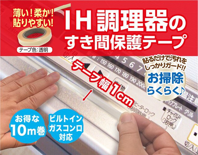 IH調理器のすきま保護テープ 10m(幅1cm) 透明 IH コンロ 隙間 テープ ガード 保護 カバー コンロ周り 掃除 ガスコンロ 隙間シール IHプレート 汚れ防止 ガラストップコンロ 縁 フチ 油汚れ 防止